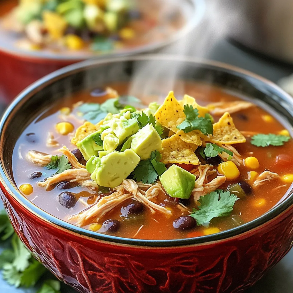 Serve: Scoop the soup into bowls, topping with diced avocado, chopped cilantro, and a handful of tortilla chips for crunch.