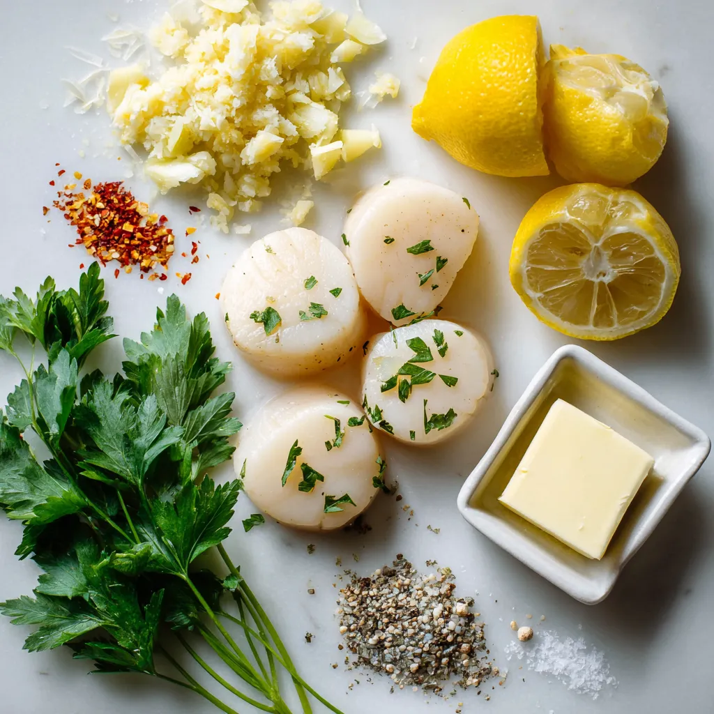 When you gather your ingredients, focus on quality. Fresh sea scallops make a big difference. Look for plump, dry scallops for the best texture. Unsalted butter gives you control over the salt level, while fresh garlic adds a rich flavor. Don’t skip the lemon juice or zest; they brighten the dish. Fresh parsley is a must for color and taste, and red pepper flakes can add a nice kick if you like heat. Lastly, the lemon wedges serve as a tasty garnish that brightens up your plate.