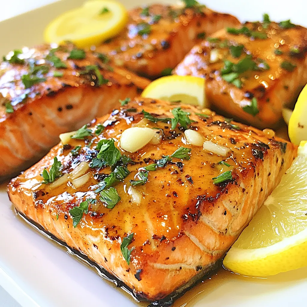 Here’s what you need for a tasty Lemon Garlic Grilled Salmon. Each item brings a unique flavor that makes this dish shine. - 4 salmon fillets (6 oz each) - 4 cloves garlic, minced - 2 tablespoons fresh lemon juice - Zest of 1 lemon - 3 tablespoons olive oil - 1 tablespoon honey - Salt and pepper to taste - Fresh parsley, chopped (for garnish) - Lemon slices (for garnish) Each ingredient plays a key role. The salmon fillets are fresh and rich in flavor. Garlic adds a nice punch, while lemon juice and zest bring brightness. Olive oil keeps the fish moist. Honey adds a hint of sweetness. Salt and pepper enhance all the flavors. For garnish, fresh parsley and lemon slices add color and zest. Together, these ingredients create a dish that is both simple and impressive. If you follow this list, your salmon will taste amazing! {{ingredient_image_1}} To start, grab a small bowl. In this bowl, whisk together the minced garlic, fresh lemon juice, lemon zest, olive oil, honey, salt, and pepper. This blend creates a tasty marinade that adds depth. Marinating is key. It lets the flavors soak into the salmon, making each bite delicious. Next, place your salmon fillets in a shallow dish. Pour the marinade over the salmon. Make sure each piece is well-coated. Cover the dish and store it in the fridge for at least 30 minutes. This time allows the fish to absorb all those wonderful flavors. Now, it’s time to grill! First, preheat your grill to medium-high heat. Once hot, take the salmon out of the marinade and throw away the leftover marinade. Place the salmon fillets skin-side down on the grill. Grill each side for about 6 to 8 minutes. You want the salmon to be flaky and reach an internal temperature of 145°F (63°C). After grilling, remove the salmon from the grill. Let it rest for a few minutes before serving. This resting time helps keep the fish juicy. When you’re ready to serve, garnish with fresh parsley and lemon slices. This not only adds color but boosts flavor too. Enjoy your meal! Checking for doneness To know when your salmon is done, look for a few signs. The flesh should change from a bright pink to a light pink. It should also flake easily with a fork. The best way is to use a meat thermometer. Aim for an internal temperature of 145°F (63°C) for safe eating. Preventing sticking on the grill To keep your salmon from sticking, start with a clean grill. Make sure to oil the grates before adding the fish. You can use a paper towel dipped in oil. Place the salmon skin-side down to help it release easier. Don’t flip it too soon; let it cook for about 6-8 minutes on one side. Adding herbs or spices You can elevate your salmon by adding fresh herbs like dill or thyme. Chopped basil also pairs well with lemon. Just sprinkle them on top before grilling. If you want a kick, try adding some crushed red pepper flakes. They bring heat without overpowering the lemon. Experimenting with marinades Feel free to play with different marinades. For a tropical twist, mix in some pineapple juice or lime instead of lemon. You can also add soy sauce for a savory touch. Try mixing honey with mustard for a sweet and tangy glaze. The options are endless, so get creative! Pro Tips Marinate Longer for Flavor: For an even more flavorful salmon, consider marinating the fillets for 1-2 hours instead of just 30 minutes. This allows the garlic and lemon to penetrate deeper into the fish. Use a Fish Basket: If you're grilling smaller fillets, a fish basket can help keep them intact and make flipping easier. This prevents the delicate salmon from falling apart on the grill. Check for Doneness: To ensure your salmon is perfectly cooked, use a food thermometer to check the internal temperature. It should reach 145°F (63°C) for safe consumption. Experiment with Herbs: Feel free to add your favorite herbs to the marinade, such as dill or thyme, for an extra layer of flavor that complements the lemon and garlic beautifully. {{image_2}} You can switch up the salmon in this recipe. Other fish work well too. Try using trout or sea bass for a fun twist. These fish have a similar texture and cook at the same time. If you want to grill chicken, it’s a great choice! Use chicken breast for the marinade. The lemon and garlic flavor will shine through. Just make sure to grill it until it reaches 165°F (74°C). You can also try tofu for a meat-free option. Firm tofu absorbs flavors well. Marinate it just like you do with salmon. Grill it for about 4-5 minutes on each side. Want to mix things up? You can create citrus-based marinades too. Swap lemon juice for lime or orange juice. Each brings a different but tasty flavor. Add some zest from the fruit for extra zing. If you like heat, add chili flakes or hot mustard. This will give your dish a spicy kick. Just be careful not to add too much. You want to enhance the flavor, not overpower it. Feel free to explore these variations. They keep your meals exciting and delicious! To keep your Lemon Garlic Grilled Salmon fresh, store it properly. First, let the salmon cool down to room temperature. Then, place it in an airtight container. Refrigerate it within two hours of cooking. The salmon will stay good for up to three days in the fridge. If you want to keep it longer, freezing is a great option. Wrap the salmon tightly in plastic wrap, then place it in a freezer bag. This way, it can last for up to three months in the freezer. Make sure to label the bag with the date. When you reheat the salmon, you want to keep it tasty. The best method is to use the oven. Preheat the oven to 350°F (175°C). Place the salmon on a baking sheet and cover it loosely with foil. Heat it for about 15 minutes or until warm. You can also use a microwave, but be careful. Place the salmon on a microwave-safe plate. Cover it with a damp paper towel. Heat it in short bursts, about 30 seconds at a time. Check often to avoid overcooking. This will help retain the flavor and texture of your delicious salmon. 
