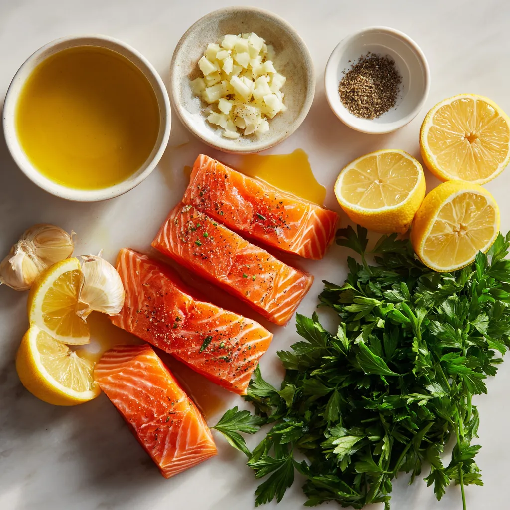 For garnish, fresh parsley and lemon slices add color and zest. Together, these ingredients create a dish that is both simple and impressive. If you follow this list, your salmon will taste amazing!