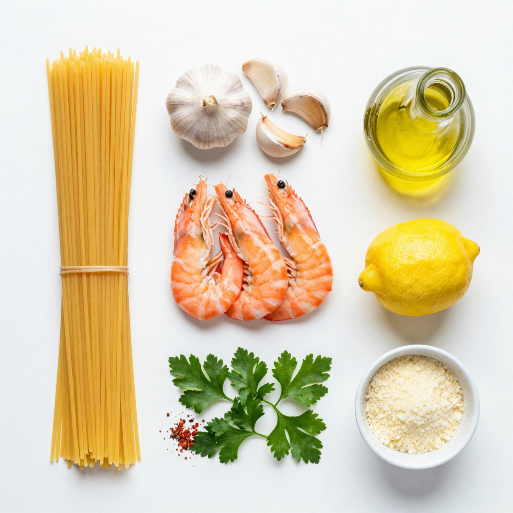 Main Ingredients for Lemon Garlic Shrimp Pasta
