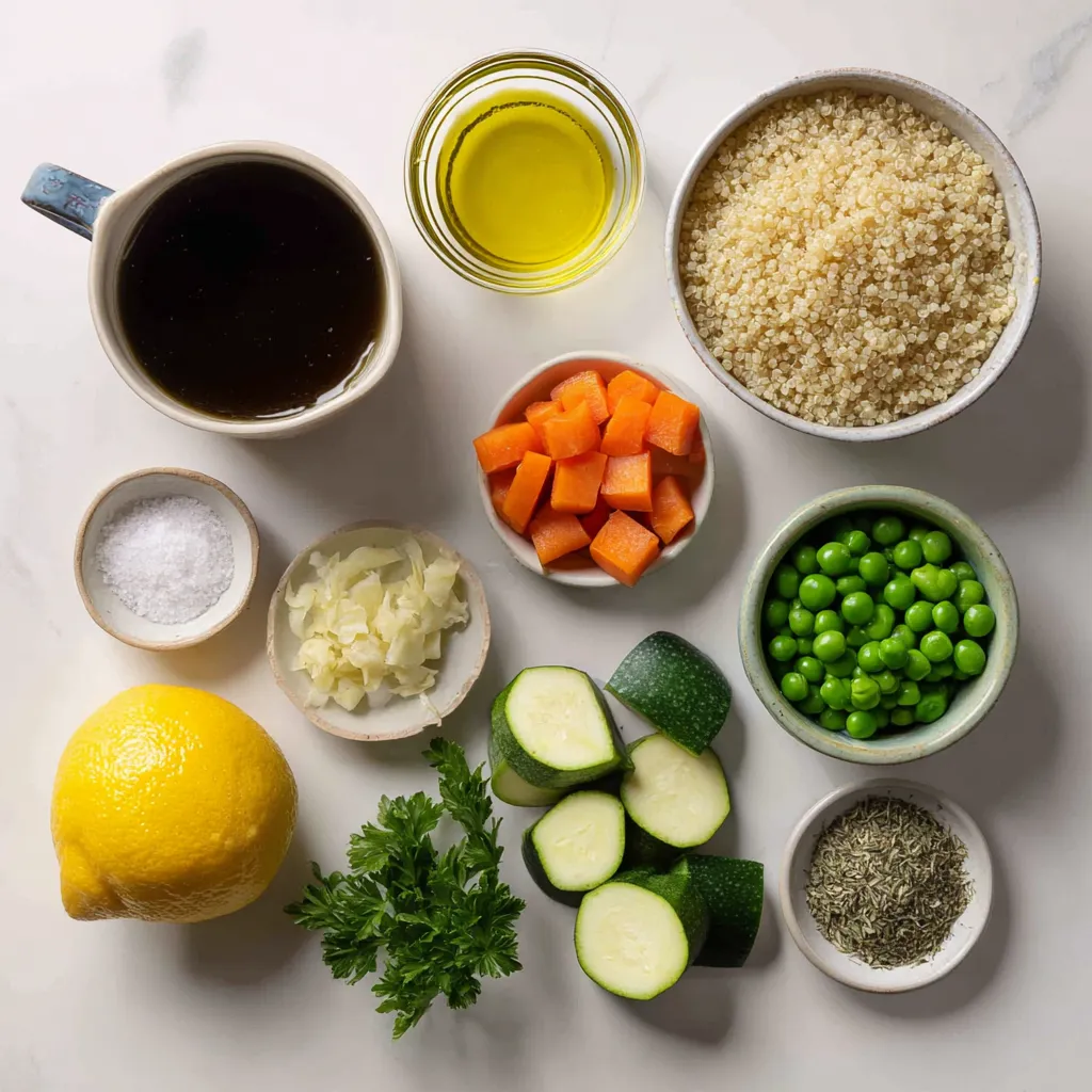 The first step in making Lemon Herb Quinoa Pilaf is gathering your ingredients. Quinoa is the star of the dish. It brings a nutty flavor and a fluffy texture. Make sure to rinse it well. This helps remove any bitter taste.