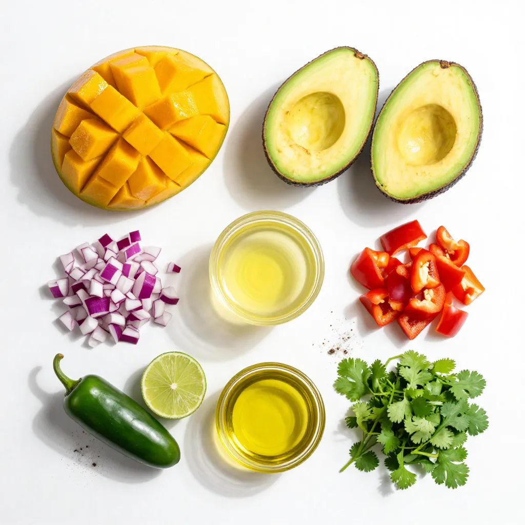 To make a delicious Mango Avocado Salsa, gather these fresh ingredients: