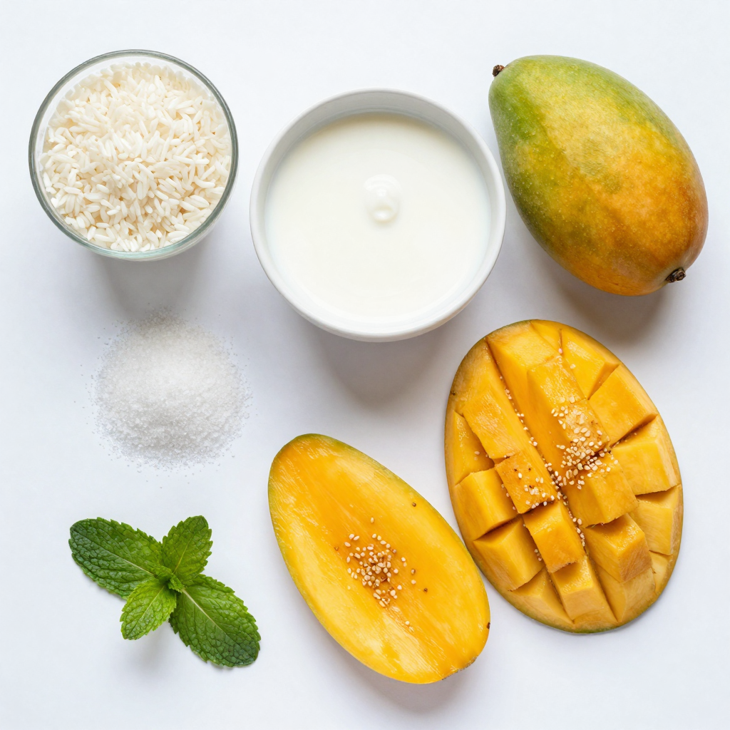 For this recipe, you need precise amounts. Use 1 cup of sticky rice. Measure 1 ½ cups of coconut milk. Add ½ cup of sugar and ½ teaspoon of salt. You’ll need 2 ripe mangoes for sweetness. Optional garnishes are toasted sesame seeds and fresh mint leaves.