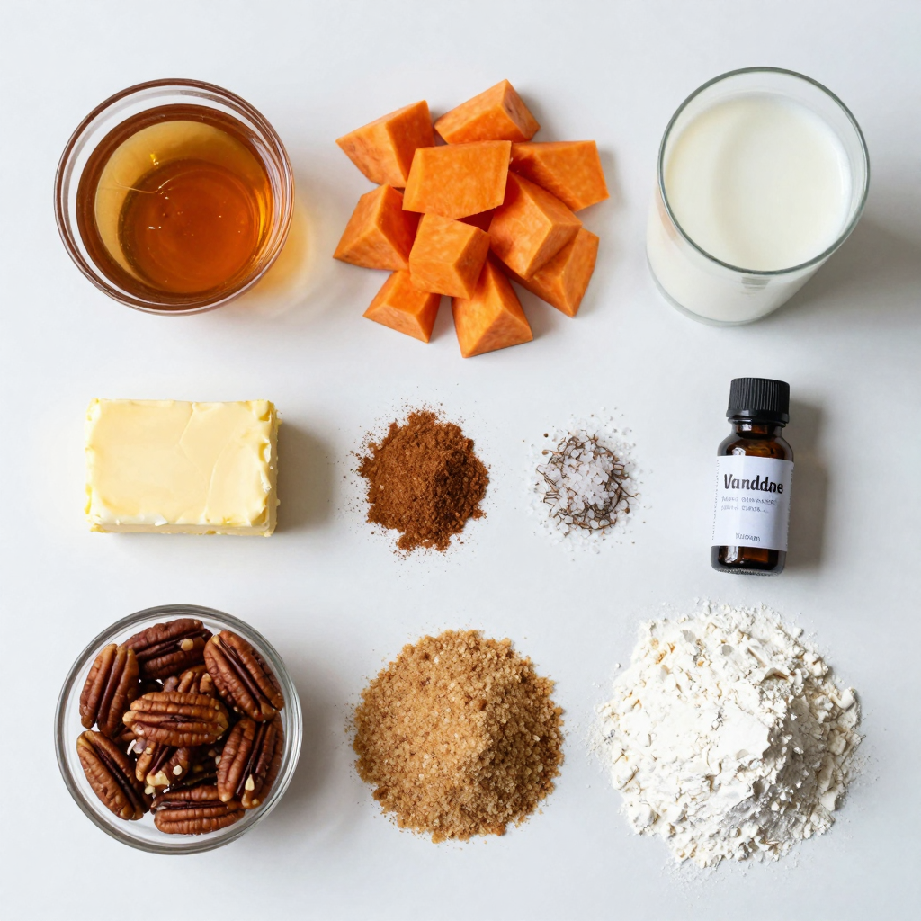To make the Maple Pecan Sweet Potato Casserole, gather these fresh ingredients. Sweet potatoes are the star here. They add a natural sweetness and creamy texture. Maple syrup gives it a rich, sweet flavor. Unsalted butter adds richness, while milk or almond milk keeps it creamy.