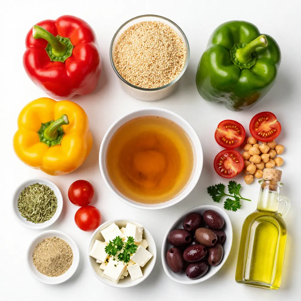 To make Mediterranean quinoa stuffed peppers, gather these ingredients: