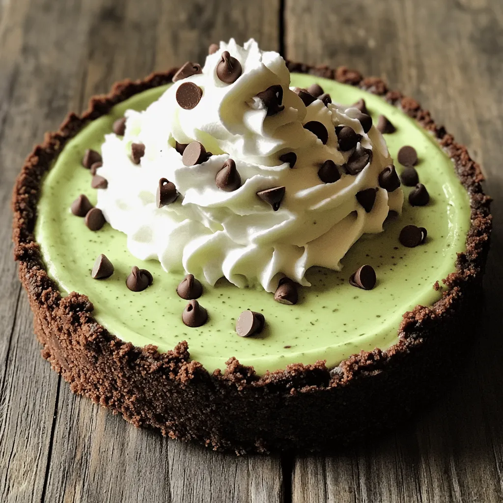 ![To make a tasty Mint Chocolate Chip Cheesecake, you need these main items: - 16 oz cream cheese, softened - 1 cup granulated sugar - 2 large eggs - 1 teaspoon peppermint extract These ingredients create a rich and creamy filling. The cream cheese gives the cheesecake its smooth texture. Sugar adds sweetness, while eggs help it set. Peppermint extract brings that fresh mint taste. The crust is simple and delicious. For it, gather: - 1 ½ cups chocolate sandwich cookie crumbs - ½ cup unsalted butter, melted Combining these makes a crunchy base. The chocolate crumbs add flavor, and the melted butter helps bind them together. You can add a few fun touches if you want: - Green food coloring (optional, for a minty hue) - Whipped cream (for topping) The green food coloring makes your cheesecake look extra festive. Whipped cream adds a nice finish on top, making it even more appealing. You can use the full recipe to guide you in making this delightful dessert. Start by preheating your oven to 325°F (160°C). In a medium bowl, combine 1 ½ cups of chocolate sandwich cookie crumbs with ½ cup of melted unsalted butter. Mix until the crumbs are coated well. Press this mixture evenly into the bottom of a 9-inch springform pan. Bake the crust for 10 minutes. Once done, take it out and let it cool. In a large mixing bowl, beat 16 ounces of softened cream cheese with a hand mixer until smooth. Gradually add 1 cup of granulated sugar, mixing until combined. Next, add 1 teaspoon of vanilla extract and 1 teaspoon of peppermint extract. If you want a fun minty color, add a few drops of green food coloring. Mix for another minute. Now, add 2 large eggs one at a time. Mix just until combined after each egg. Be careful not to overmix. Then, add 1 cup of sour cream and mix until smooth. Gently fold in 1 cup of mini chocolate chips. Pour the cheesecake mixture over the cool crust. Smooth the top with a spatula. Bake it in your preheated oven for 45-50 minutes. Look for the edges to be set, while the center has a slight jiggle. After baking, turn off the oven and crack the door. Let the cheesecake cool gradually for about an hour. Once it cools, cover it with plastic wrap. Refrigerate for at least 4 hours, or overnight for the best flavor and texture. Before serving, top with whipped cream and sprinkle more mini chocolate chips on top. Enjoy your Mint Chocolate Chip Cheesecake! For the complete recipe, check out the [Full Recipe]. To get a smooth texture, start with room temperature ingredients. Cold cream cheese can clump up. Mix the cream cheese slowly. Avoid overmixing. If you mix too fast, air bubbles can form. Those bubbles can crack your cheesecake. When baking, look for a slight jiggle in the center. This means it's not overcooked. Use an oven thermometer to check the heat. Ovens can be off by a few degrees. If you bake at the wrong temp, your cheesecake may not set right. Serve your cheesecake with a swirl of whipped cream. Sprinkle extra mini chocolate chips on top. This makes your cake look fancy and delicious. You can also add fresh mint leaves for a pop of color. Enjoy every creamy bite! For the full recipe, revisit the ingredients and instructions above. {{image_2}} You can make your mint chocolate chip cheesecake even better by adding extra flavors. A drop of vanilla or almond extract can change the taste. Vanilla adds warmth and depth, while almond gives a nice nutty touch. Use about half a teaspoon to start. Taste as you go to find your perfect mix. If you want a different crust, try using graham cracker crumbs instead of chocolate cookies. This gives a nice contrast to the minty filling. For gluten-free options, use gluten-free cookie crumbs. Just make sure the crumbs are finely crushed, so they hold together well. You can even use nuts for a crunchy and fun twist. Serving your cheesecake can be as fun as making it! Instead of cutting it into slices, try serving it in individual cups. This makes for a cute and easy dessert for parties. You can also use decorative plates. Add a sprig of mint or a drizzle of chocolate sauce on top for a fancy touch. These small details can impress your guests and make your dessert stand out. For the full recipe, check the link above. To keep your Mint Chocolate Chip Cheesecake fresh, cover it tightly. Use plastic wrap or foil. This keeps moisture in and prevents odors from other foods. Store it in the fridge for up to five days. The cheesecake tastes best after it chills overnight. This time lets the flavors blend well. You can freeze slices of cheesecake for later. Wrap each slice in plastic wrap. Then, place the wrapped slices in a freezer bag. Press out as much air as you can. This helps avoid freezer burn. To enjoy, thaw the slices in the fridge overnight. This keeps the texture smooth and creamy. In the fridge, your cheesecake lasts about five days. In the freezer, it can last up to three months. After this time, the taste and texture may change. Enjoy your Mint Chocolate Chip Cheesecake while it’s fresh for the best flavor. Making Mint Chocolate Chip Cheesecake takes about 5 hours in total. This includes: - Prep time: 30 minutes to gather and mix ingredients. - Bake time: 45-50 minutes in the oven. - Cooling time: 1 hour in the oven after baking. - Chilling time: At least 4 hours in the fridge for the best flavor. This breakdown helps you plan your day for this creamy delight. Yes, you can make this cheesecake in advance! In fact, it tastes better after chilling overnight. Here are some benefits of making it ahead: - Flavor develops: Chilling allows the mint and chocolate flavors to blend. - Convenience: You can serve it fresh without last-minute stress. - Storage: Wrap it well in plastic wrap to keep it fresh in the fridge. You can make this cheesecake up to 2 days ahead of when you plan to serve it. If you need a cream cheese substitute, you have options! Here are some alternatives: - Greek yogurt: Use plain Greek yogurt for a tangy flavor and creamy