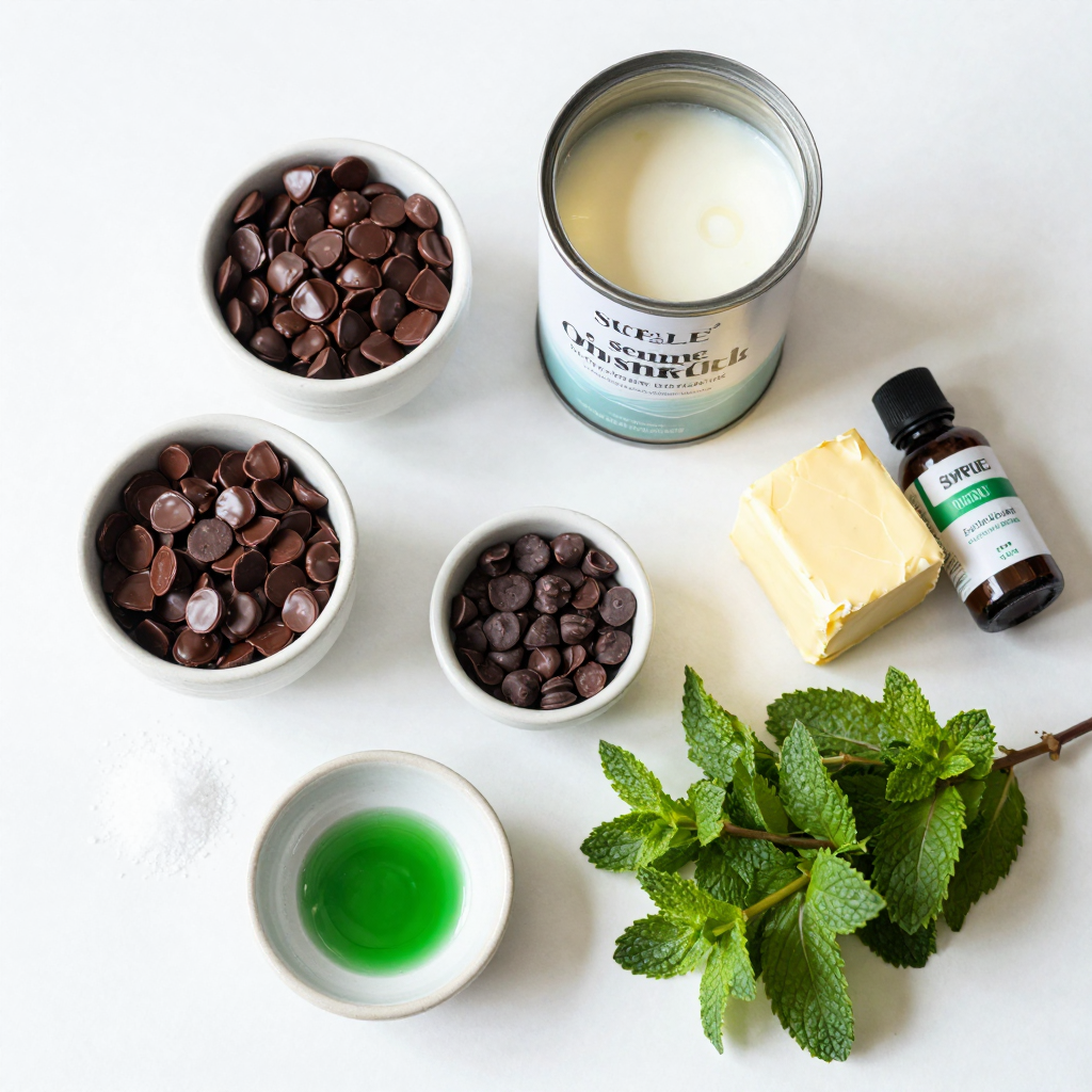 To make your mint chocolate chip fudge, gather these simple ingredients:
