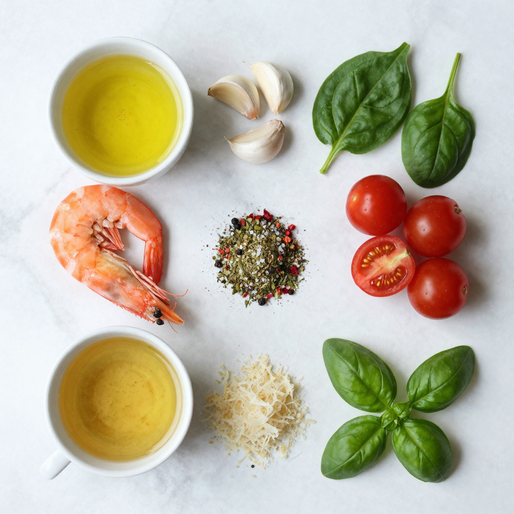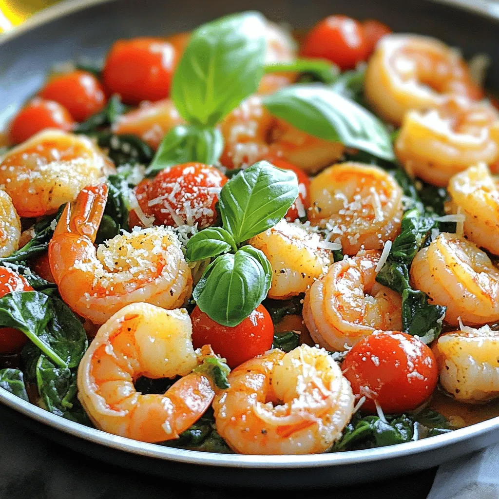 When you gather your ingredients, focus on freshness. The large shrimp should look firm and have a slight sheen. Olive oil is key for flavor, so don’t skimp. Fresh garlic adds a strong base. The cherry tomatoes burst with sweetness, and the spinach will give you a pop of color.