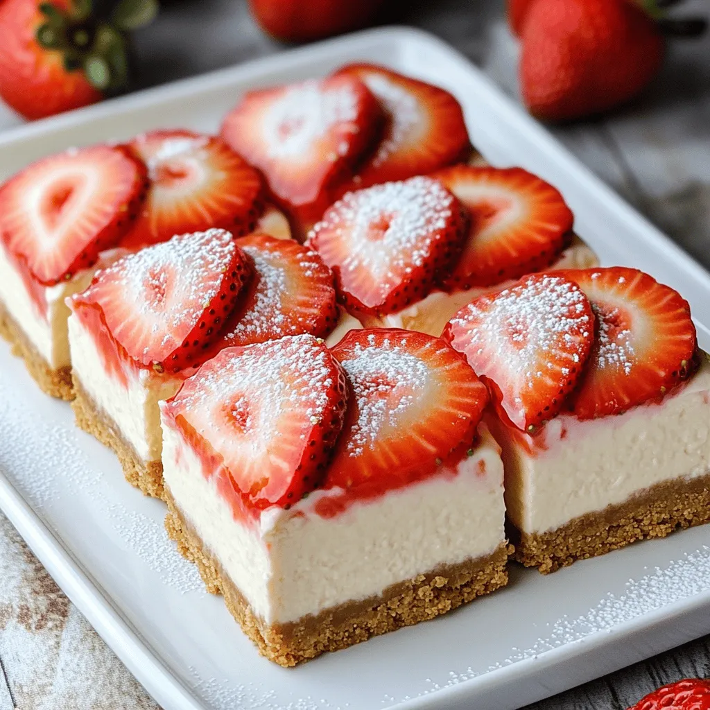 • Presentation tips for serving: To make your bars look great, cut them neatly into squares. Place them on a nice platter. Add fresh strawberries on top. A light dusting of powdered sugar adds a nice touch. Serve them chilled for the best taste.