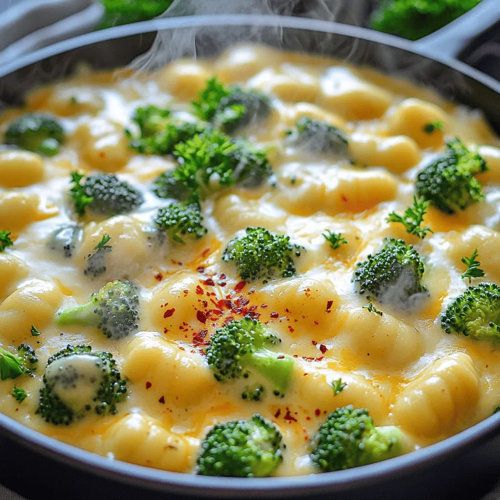 Gathering the right ingredients is key for this dish. You need gnocchi, which you can find in most stores. Fresh broccoli adds color and nutrients. The vegetable broth gives flavor and helps cook everything. Cheddar and Parmesan cheeses make it rich and creamy. Heavy cream adds extra smoothness. Garlic gives a nice kick. Olive oil helps cook the garlic and adds flavor. Finally, salt and pepper season the dish, while red pepper flakes add heat if you like spice.