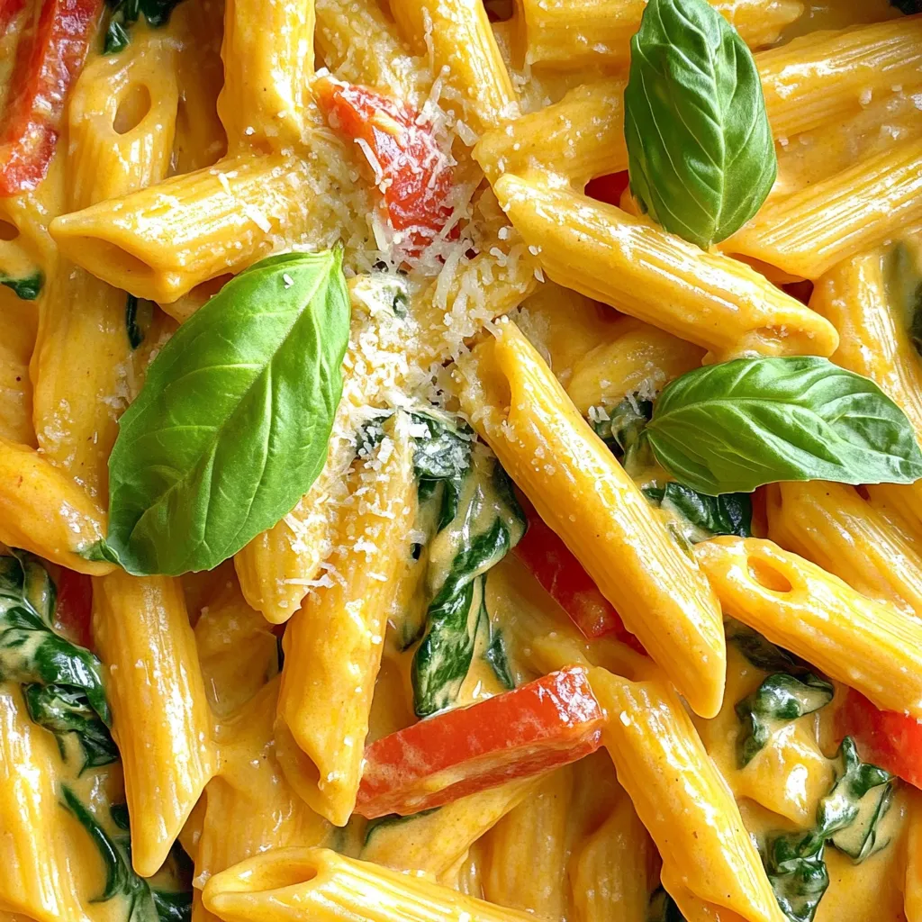 - 12 oz (340g) pasta (penne or farfalle) - 2 red bell peppers, roasted and diced - 1 cup heavy cream or coconut cream Pasta is the heart of this dish. I love using penne or farfalle. Both hold the sauce well. Roasted red bell peppers bring a sweet and smoky flavor. You can roast them yourself or buy them jarred. The cream adds richness. You can choose heavy cream for a rich taste or coconut cream for a dairy-free option. - 1 medium onion, finely chopped - 3 cloves garlic, minced - 1 teaspoon smoked paprika - 1/2 teaspoon red pepper flakes (adjust to taste) - 1 cup spinach, roughly chopped - Salt and pepper to taste Onion and garlic are key for flavor. Sauté them until soft. Smoked paprika adds depth. Red pepper flakes give a hint of heat. You can adjust the amount to suit your taste. Fresh spinach adds color and nutrition. Always season with salt and pepper to bring out the flavors. - Fresh basil leaves - Grated Parmesan cheese (optional, for serving) Garnishing is important for presentation. Fresh basil adds a burst of freshness. Grated Parmesan cheese is optional but adds a nice salty touch. You can omit it for a vegan dish. First, heat a drizzle of olive oil in a large pot. Add the finely chopped onion and minced garlic. Sauté these for about 3-4 minutes. You want them soft and translucent. Next, stir in the roasted red peppers. Cook them for 2-3 minutes more. This helps their flavors blend with the onion and garlic. Now, add the dry pasta to the pot. Pour in the vegetable broth, making sure the pasta is fully submerged. Bring it to a gentle boil. Then, reduce the heat to low. Cover the pot and let it simmer for about 10-12 minutes. Stir occasionally to keep the pasta from sticking. You want it to be al dente, firm but cooked through. Once the pasta is done, stir in the heavy cream or coconut cream. Add the smoked paprika, red pepper flakes, and chopped spinach. Stir for another 2-3 minutes until the spinach wilts and the sauce becomes creamy. Taste your dish and adjust the salt and pepper as needed. If you want a thinner sauce, add a bit more vegetable broth. - To avoid pasta sticking, stir the pasta often while cooking. This keeps it separate. - For a creamy sauce, add the cream slowly and mix well. Heat it gently to keep it smooth. - Want more kick? Add extra red pepper flakes or try some cayenne for heat. - You can mix in other veggies, like zucchini or peas, for more color and taste. - Serve the pasta in big bowls for a cozy look. - Top each bowl with fresh basil leaves and grated Parmesan for a pop of flavor. {{image_2}} You can make this dish vegetarian or vegan easily. For a vegan cream substitute, use coconut cream. It adds a nice richness. You can also use cashew cream for a different flavor. If you want to add protein, try tofu or chickpeas. Tofu will soak up the flavors well. Chickpeas will add a nice texture and protein boost. If you want a healthier twist, use whole wheat pasta. It has more fiber and nutrients. Gluten-free pasta is also a great choice. Just be aware that cooking times may differ. Check the package for specific cooking times. Whole wheat or gluten-free pasta may take longer than regular pasta. To switch up the flavor, try different types of peppers. Yellow or orange bell peppers will give a sweeter taste. You can also mix in spices like Italian seasoning or fresh herbs. Adding cheese blends like mozzarella or feta can enhance the dish too. Just sprinkle some on top before serving for extra flavor. Store your creamy red pepper pasta in a sealed container. This keeps it fresh and tasty. The shelf life of leftovers is about 3 to 5 days in the fridge. Make sure to cool it down before storing. Label it with the date for easy tracking. To reheat pasta, use the stove or microwave. If using the stove, add a splash of broth. This helps keep the pasta moist. In the microwave, heat it in short bursts, stirring in between. If the sauce is too thick, add a little cream or broth to adjust the texture. You can freeze this dish for later use. To freeze, let it cool completely first. Then, place it in freezer-safe containers. It will stay good for about 2 to 3 months. When you're ready to eat, thaw it overnight in the fridge. Reheat on the stove, adding a bit of cream to keep it creamy. Yes, you can prepare this dish ahead of time. To do this, follow the steps up until you add the cream and spinach. After cooking the pasta, let it cool, and store it in the fridge. When you are ready to eat, reheat it gently on the stove. Then, add the cream and spinach. Stir well and heat until warm. Yes, frozen red peppers work well in this dish. They may be softer than fresh peppers, but they still add great flavor. Just thaw them first, then chop them into small pieces. Add them as you would fresh peppers in the recipe. This swap saves time and reduces waste. To add heat to your dish, increase the red pepper flakes. Start with one teaspoon and taste as you go. You can also add hot sauce or diced fresh chili peppers. If you like a smoky flavor, try adding chipotle powder. Adjust the spice level to fit your taste. This blog covered a delightful pasta dish that is both simple and versatile. We explored main ingredients like pasta options, roasted red peppers, and cream choices. I shared tips on sautéing aromatics and cooking pasta to get the best texture. We also went over creative variations, storage, and reheating tips. In the end, this dish can be made to fit your taste and needs. Enjoy creating and sharing it with friends and family!