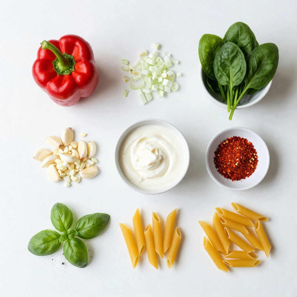 Pasta is the heart of this dish. I love using penne or farfalle. Both hold the sauce well. Roasted red bell peppers bring a sweet and smoky flavor. You can roast them yourself or buy them jarred. The cream adds richness. You can choose heavy cream for a rich taste or coconut cream for a dairy-free option.
