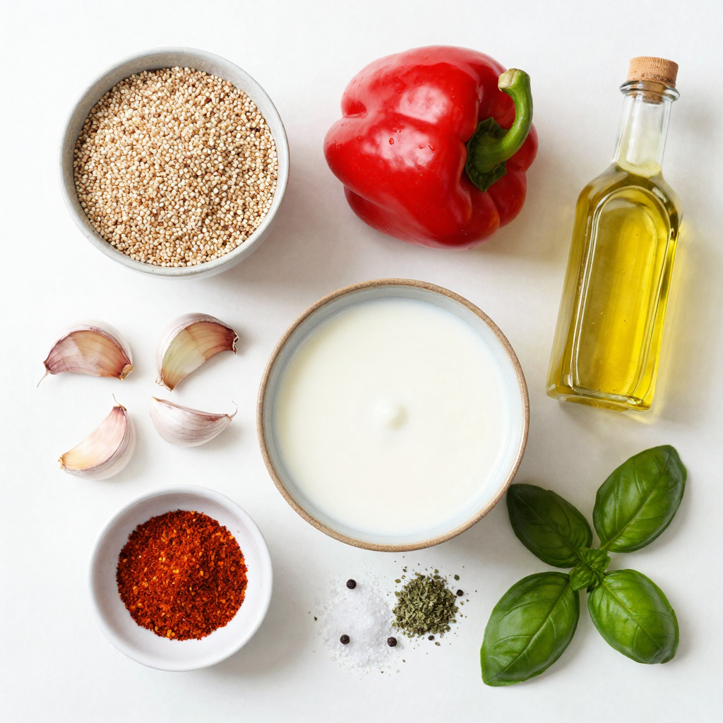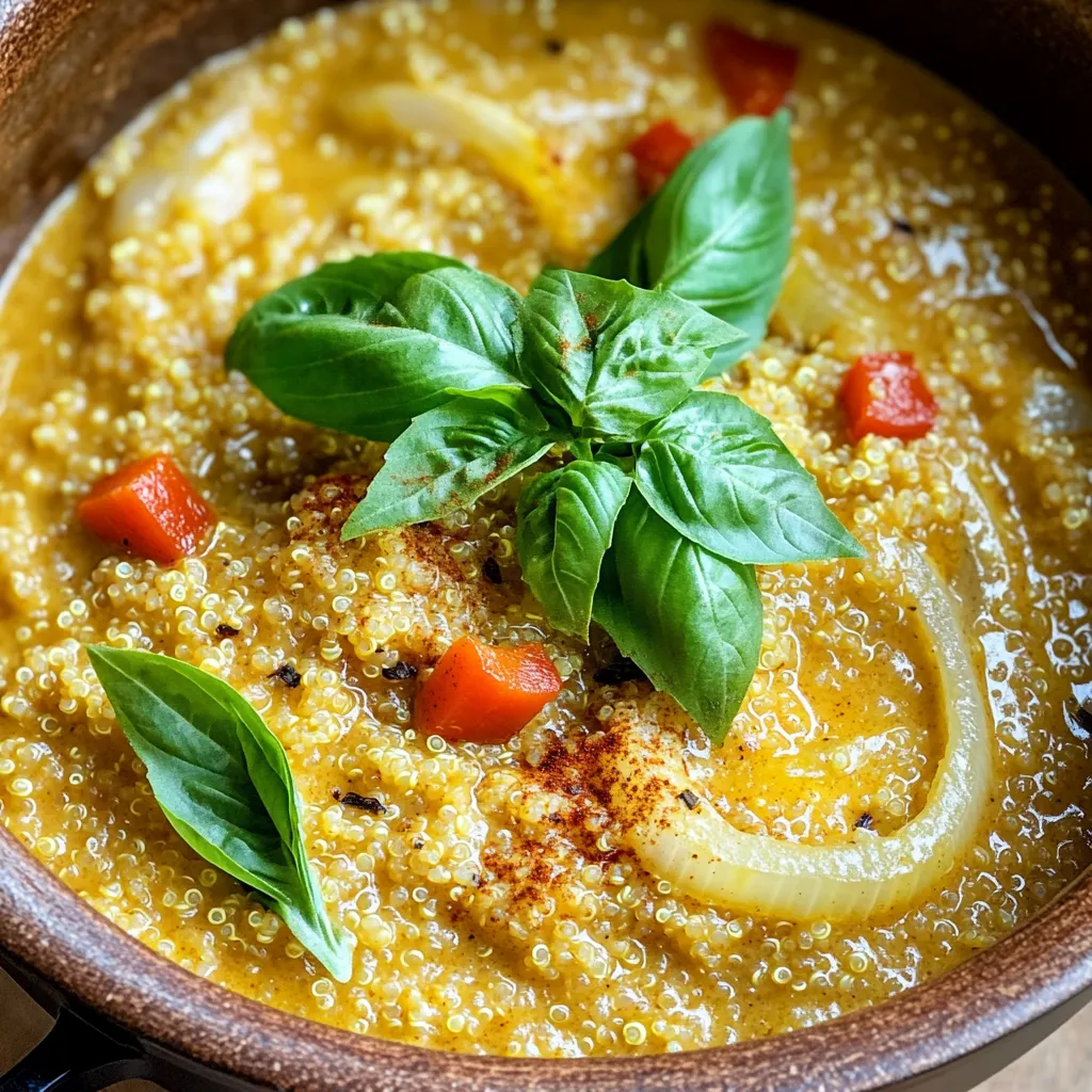 To make this dish, you need: - 1 cup quinoa - 2 cups vegetable broth - 1 large red bell pepper - 1 onion - 3 cloves garlic These main ingredients create a strong base for flavor. Quinoa is healthy and filling. The red bell pepper adds sweetness and color. The onion and garlic give a tasty aroma. For the creamy texture, gather: - 1 cup coconut milk - 1 tablespoon olive oil Coconut milk makes the dish rich and smooth. Olive oil adds a nice depth to the flavor. You will also need: - 1 teaspoon smoked paprika - 1 teaspoon dried oregano - Salt and pepper These seasonings enhance the taste. Smoked paprika gives a warm, smoky flavor. Oregano adds an earthy note. Adjust salt and pepper to your liking. For the final touch, use: - Fresh basil for serving Fresh basil adds a burst of freshness. It also looks great on the plate, making the meal more appealing. 1. Start by heating the olive oil in a large pot over medium heat. 2. Add the finely chopped onion. Sauté it until it turns translucent, which takes about 4-5 minutes. 3. Next, stir in the minced garlic. Cook it for 1 minute until you smell its strong aroma. 4. Now, add the diced red bell pepper. Sauté for 3-4 minutes until it becomes slightly soft. 5. Sprinkle the smoked paprika and dried oregano into the pot. Stir it well to mix the flavors. 1. Pour in the rinsed quinoa and the vegetable broth. Stir everything together so the quinoa spreads out evenly. 2. Bring the mixture to a boil. Once boiling, lower the heat to low. 3. Cover the pot and let it simmer for about 15 minutes. The quinoa should absorb all the liquid and be fully cooked. 1. Once the quinoa is done, take the pot off the heat. 2. Stir in the coconut milk until the quinoa becomes creamy and well mixed. 3. Taste your dish and adjust the seasoning with salt and pepper as you like. 4. Serve your One-Pot Creamy Red Pepper Quinoa hot, garnished with fresh basil. Enjoy! To make the best quinoa, start by rinsing it well. Rinsing removes a bitter coating called saponin. Use a fine mesh strainer and run cold water over the quinoa for 1-2 minutes. This simple step makes a big difference in taste. Next, pay attention to cooking times and heat. After bringing your pot to a boil, lower the heat to simmer. Cover the pot tightly and let it cook for about 15 minutes. This helps the quinoa absorb all the liquid. Once the quinoa is fluffy, it's ready to eat! To boost flavors, think about adding herbs and spices. You can try a pinch of chili powder for heat or some thyme for earthiness. Fresh herbs like parsley or cilantro also add a nice touch. Using homemade vegetable broth is another great tip. It enhances the dish's depth and flavor. If you don't have homemade broth, store-bought works well too, but look for low-sodium options. Pair your creamy quinoa with tasty side dishes. A simple green salad or roasted veggies complement it nicely. You can also serve it with crusty bread for a heartier meal. When it comes to presentation, a sprinkle of fresh basil makes it pop. Serve it in wide bowls for a cozy feel. You might also add a drizzle of olive oil on top for extra richness. {{image_2}} You can boost the protein in this meal easily. Try adding chickpeas or black beans. They add great flavor and texture. You can also grill some chicken or tofu. Both options work well with the creamy quinoa. Feel free to mix up the veggies! You can use green or yellow bell peppers instead of red. They bring a nice color and taste. Adding leafy greens like spinach also works well. Spinach wilts down nicely and adds nutrition. If you want to change the creaminess, you have options. Use different types of coconut milk for a unique flavor. You can also try dairy options like heavy cream or sour cream. Each gives a rich, creamy finish to the dish. To store leftovers, let the quinoa cool down first. Then, place it in an airtight container. This keeps it fresh and tasty. In the fridge, the quinoa lasts up to 4 days. Be sure to check for any signs of spoilage before eating. You can freeze this dish for longer storage. First, let it cool completely. Then, transfer it to a freezer-safe bag or container. Squeeze out any air to prevent freezer burn. The quinoa will stay good for about 3 months. When ready to eat, thaw it in the fridge overnight. When reheating, I recommend using the stovetop. This method helps keep the creamy texture. Add a splash of water or broth to keep it moist. If using a microwave, cover the dish to avoid dryness. Heat in short intervals, stirring often for even warmth. Yes, you can use any type of quinoa. White, red, or black quinoa all work well. Each type has its own flavor and texture. White quinoa cooks faster and is fluffier. Red and black quinoa offer a nutty taste and chewy texture. Just rinse them before cooking to remove any bitter coating. Absolutely! This recipe is already vegan if you use vegetable broth. The coconut milk adds creaminess without dairy. You can also skip any animal products in your side dishes. Enjoy a hearty, plant-based meal that everyone will love. Serve this dish hot, straight from the pot. Garnish with fresh basil for a pop of color. You can also pair it with a light salad or steamed veggies. This meal is filling and can stand alone or be a side dish. Quinoa is done when it is fluffy and the little white tails appear. This means the germ has separated from the seed. It usually takes about 15 minutes of simmering. If there’s still liquid, cook it a bit longer until it's absorbed. Yes! To add heat, include red pepper flakes or diced jalapeños. You can also use a spicy vegetable broth. Adjust the heat to your taste, and enjoy a flavorful twist on this creamy dish. This recipe for One-Pot Creamy Red Pepper Quinoa brings many flavors together. We covered ingredients like quinoa, red bell pepper, and rich coconut milk. I shared steps for cooking and tips for perfect results. You can vary the dish with proteins or different veggies. Store leftovers correctly for future meals
