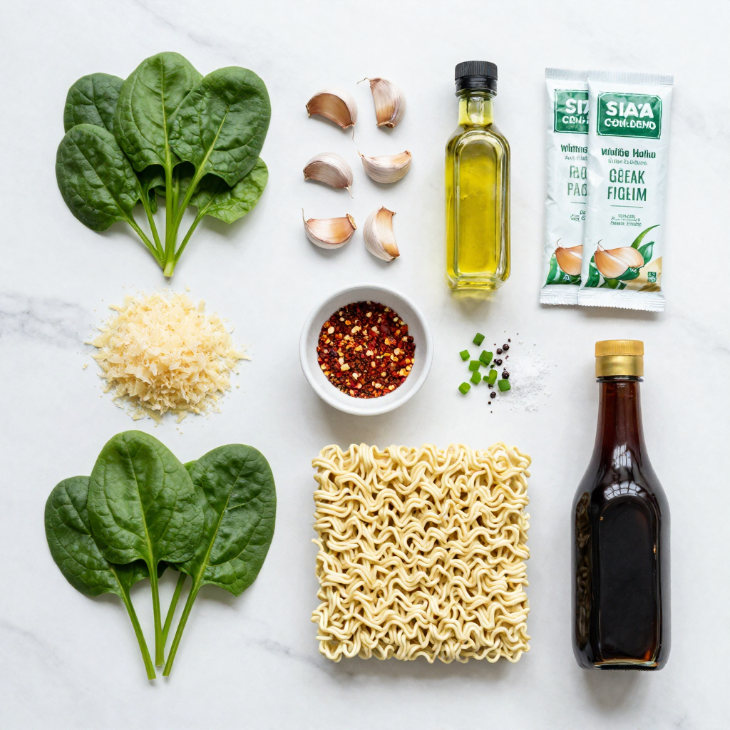 For this dish, I choose low-sodium chicken broth. It gives the ramen a nice base without too much salt. Instant ramen noodles are quick and easy. They cook fast and soak up all those great flavors. Minced garlic adds a strong, rich taste. I use fresh garlic for the best flavor.
