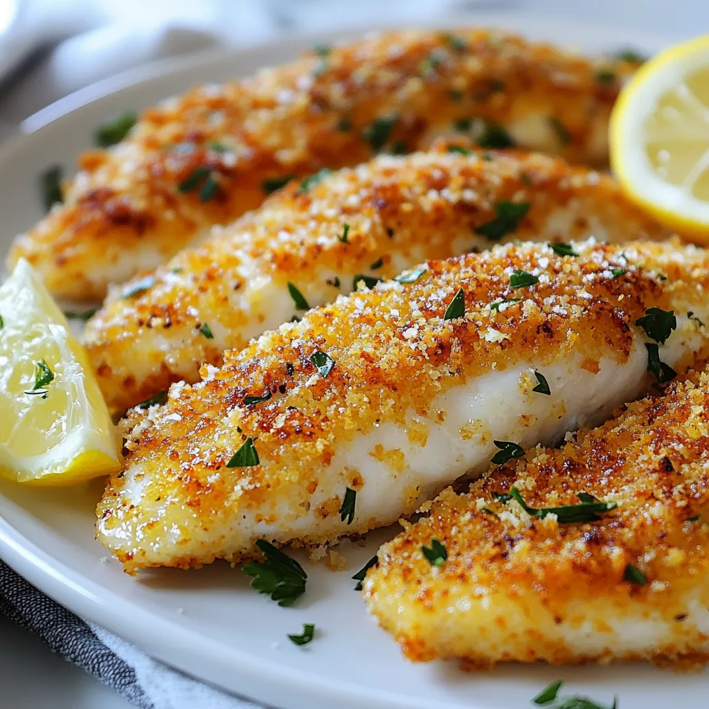 A delicious and crispy tilapia dish coated with a flavorful Parmesan breadcrumb crust.