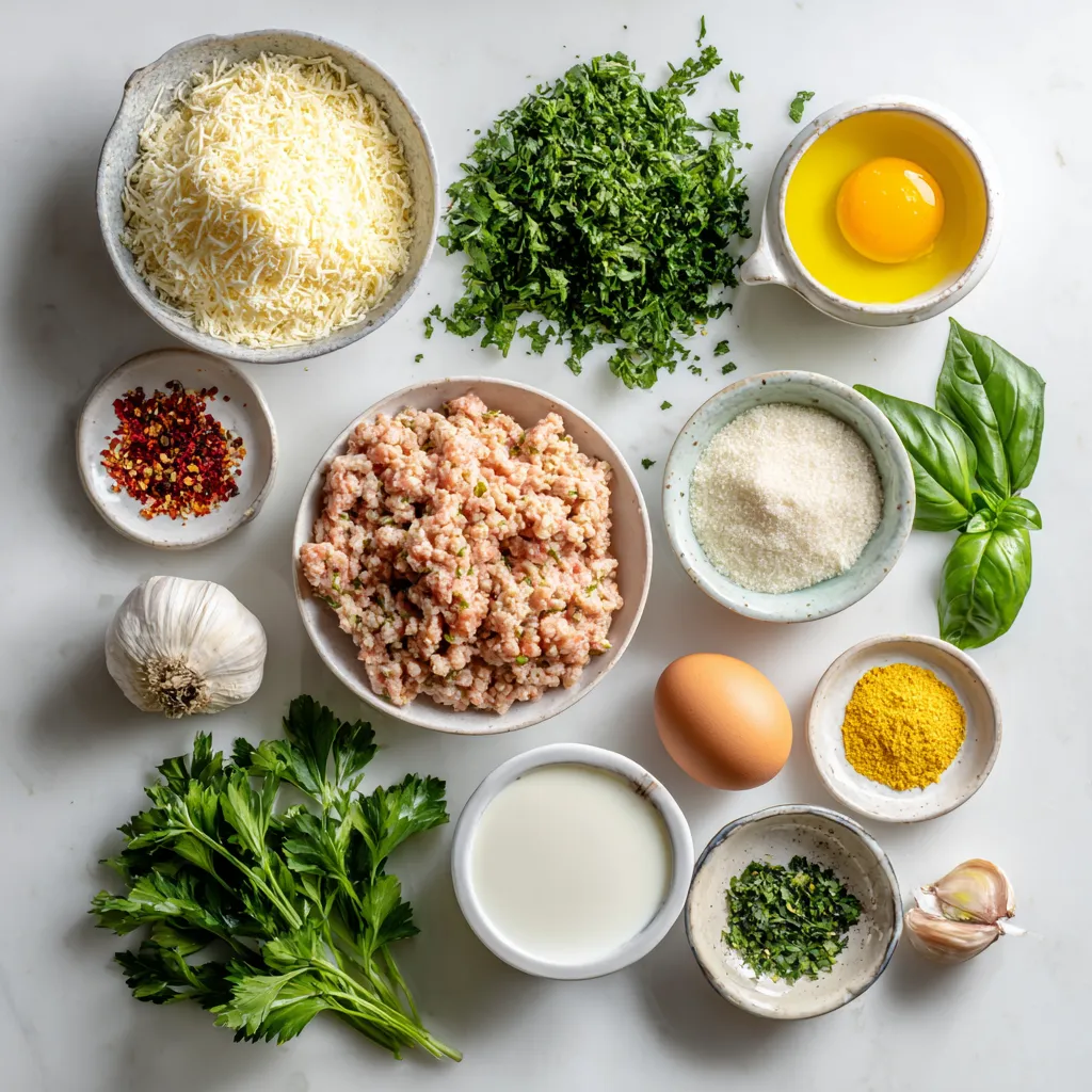 Gather these ingredients to create tasty Parmesan herb turkey meatballs. Ground turkey serves as a healthy base. The grated Parmesan adds a rich, cheesy flavor. Breadcrumbs help bind the mixture and keep the meatballs tender.