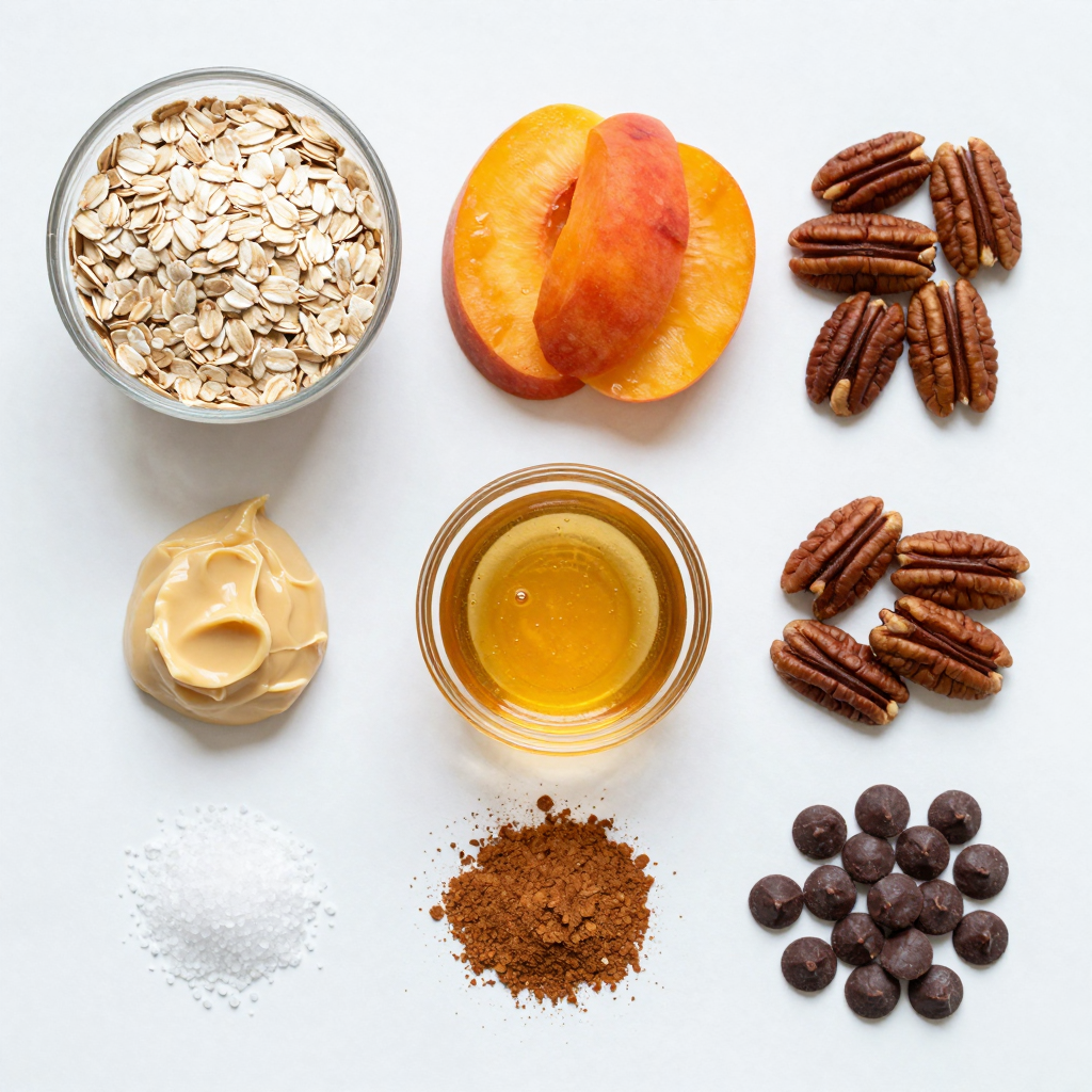 These ingredients create a tasty and nutritious snack. The oats give a good base, while the dried peaches add sweetness. Pecans bring crunch and healthy fats. Honey or maple syrup serves as a natural sweetener, making the bites sticky. Almond butter adds creaminess and flavor.