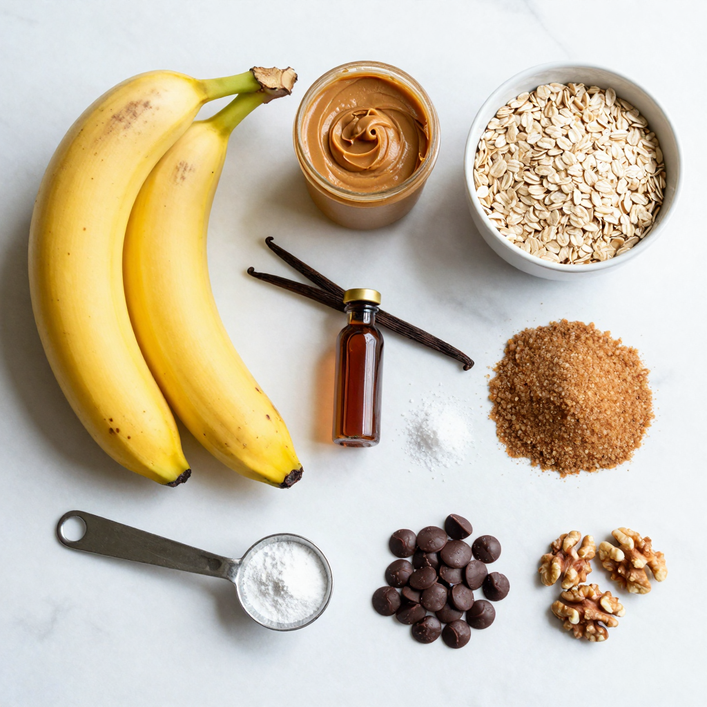 Start by preheating your oven to 350°F (175°C). This helps the cookies bake evenly. Line a baking sheet with parchment paper. This makes for easy cleanup later. In a large bowl, mash two ripe bananas. You want them smooth but not completely liquid. Then, add one cup of natural peanut butter to the bananas. Stir until the mixture is combined well. Next, mix in half a cup of brown sugar. You can use coconut sugar if you prefer a healthier choice. Add half a teaspoon of vanilla extract, a quarter teaspoon of baking soda, and a quarter teaspoon of salt. Stir the mixture again until it is smooth.