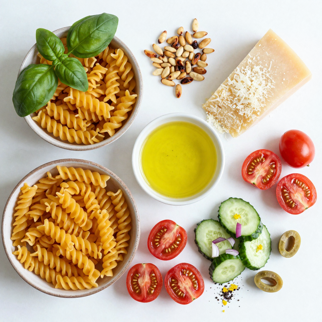 To make great pesto pasta salad, start with the right pasta. I prefer fusilli or penne. They hold the sauce well. Bring a big pot of salted water to a boil. Add your pasta and cook it until it is al dente. This means it should be firm but not hard. This usually takes about 8-10 minutes. After cooking, drain the pasta. Rinse it with cold water to stop it from cooking more. This keeps the pasta fresh and nice. Put the cooled pasta in a large mixing bowl.