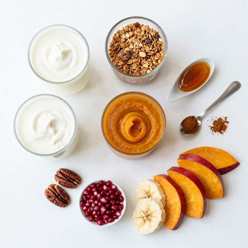 To make the Pumpkin Spice Granola Yogurt Parfait, gather these simple ingredients: