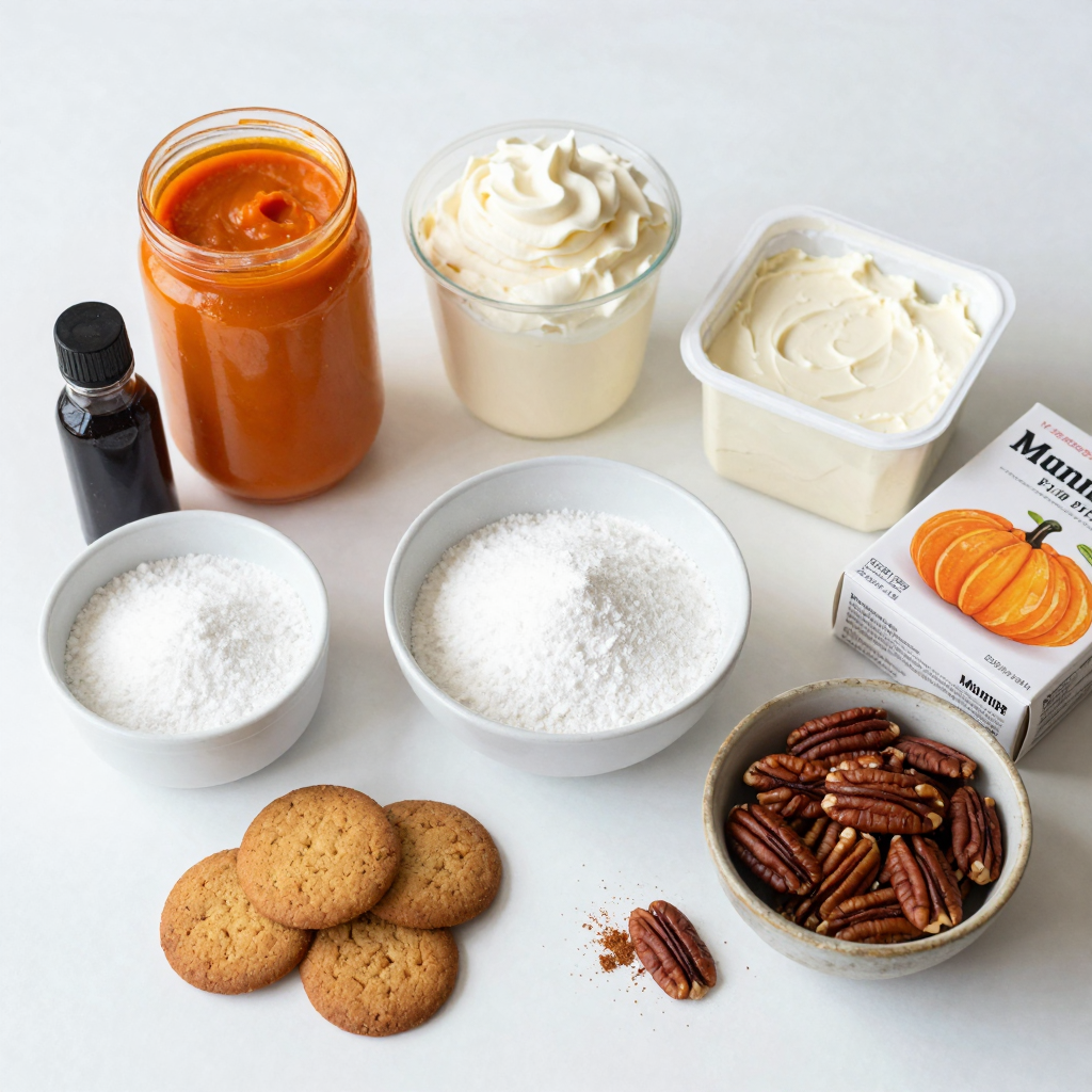 The main ingredients in this cake create its rich flavor. Pumpkin puree brings warmth and earthiness. Heavy cream adds fluffiness, while mascarpone gives it a creamy, smooth texture. The powdered sugar sweetens the mix perfectly. Vanilla extract adds a lovely aroma, and pumpkin pie spice gives it that seasonal touch.