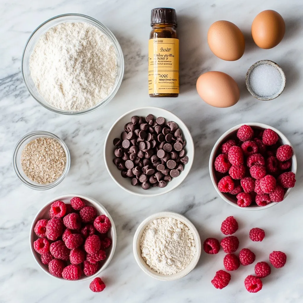 When making raspberry chocolate chip muffins, use these simple ingredients. The blend of flours gives a nice texture. Raspberries add a burst of flavor, while chocolate chips bring sweetness. Applesauce keeps the muffins moist.