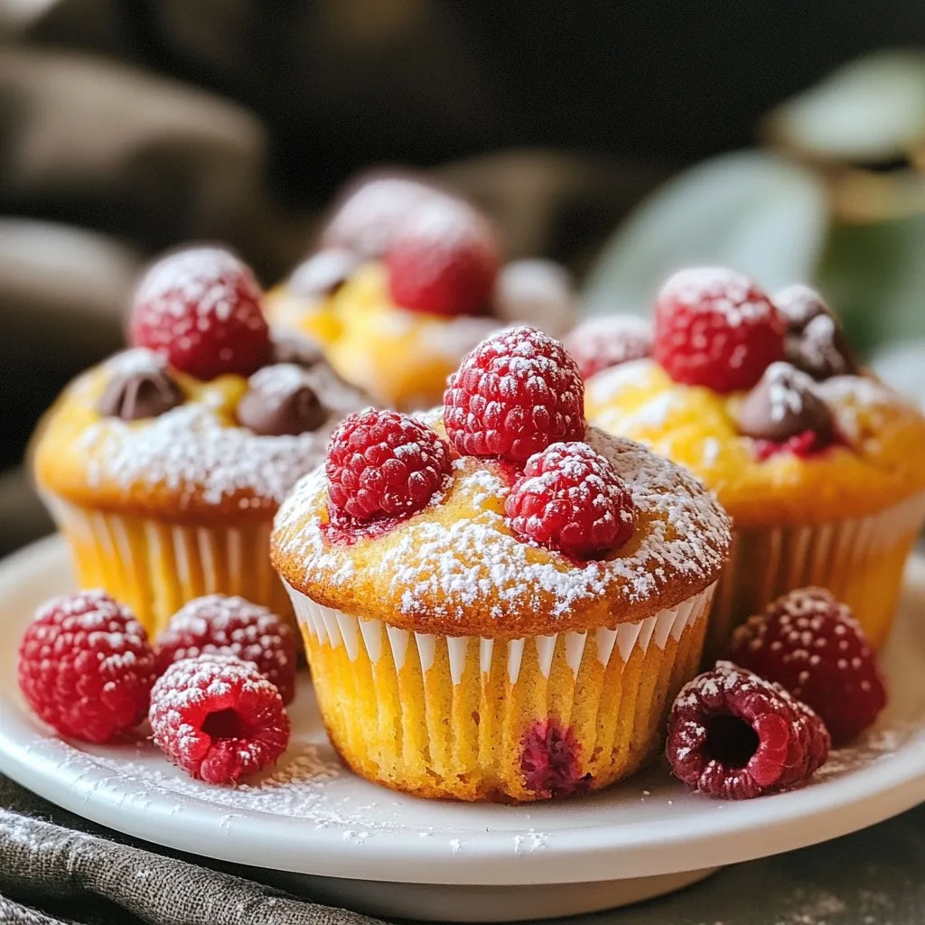 - 1 cup all-purpose flour - 1/2 cup whole wheat flour - 1 cup fresh raspberries (or frozen, thawed) - 1/2 cup semi-sweet chocolate chips - 1/2 cup granulated sugar - 1/4 cup brown sugar - 1 teaspoon baking powder - 1/2 teaspoon baking soda - 1/4 teaspoon salt - 1/2 cup unsweetened applesauce - 2 large eggs - 1/3 cup vegetable oil - 1 teaspoon vanilla extract When making raspberry chocolate chip muffins, use these simple ingredients. The blend of flours gives a nice texture. Raspberries add a burst of flavor, while chocolate chips bring sweetness. Applesauce keeps the muffins moist. - For gluten-free muffins, swap all-purpose flour with a gluten-free blend. - Use dairy-free chocolate chips if you need a dairy-free option. - Each muffin has about 150 calories. - Macronutrient breakdown: roughly 3g protein, 20g carbs, and 7g fat. Understanding the ingredients helps you make these muffins your own. You can customize flavors and make them fit your diet. {{ingredient_image_1}} First, you need to preheat your oven to 375°F (190°C). This step is key for perfect muffins. While the oven heats, line a muffin tin with paper liners or grease it with cooking spray. This helps the muffins release easily after baking. Grab a large bowl and combine the following dry ingredients: - 1 cup all-purpose flour - 1/2 cup whole wheat flour - 1 teaspoon baking powder - 1/2 teaspoon baking soda - 1/4 teaspoon salt Whisk these ingredients together until they blend well. This helps the muffins rise evenly. In another bowl, mix these wet ingredients: - 1/2 cup granulated sugar - 1/4 cup brown sugar - 1/2 cup unsweetened applesauce - 2 large eggs - 1/3 cup vegetable oil - 1 teaspoon vanilla extract Beat them together until the mix is smooth. This adds moisture and sweetness to your muffins. Now, slowly add the wet mixture to the dry ingredients. Stir gently until just combined. Don't overmix! A few lumps are okay. Overmixing can make your muffins tough. Next, gently fold in: - 1 cup fresh raspberries (or frozen, thawed) - 1/2 cup semi-sweet chocolate chips Use a spatula to ensure an even distribution. This helps each muffin have a burst of flavor. Scoop the batter into the muffin tin, filling each cup about 2/3 full. Bake them in your preheated oven for 18-20 minutes. To check doneness, insert a toothpick into the center of a muffin. It should come out clean when ready. Let the muffins cool in the pan for 5 minutes before moving them to a wire rack. This cooling step keeps them soft and delicious. To make perfect muffins, avoid overmixing. Mix the wet and dry ingredients just until combined. This keeps the muffins light and fluffy. A few lumps are okay. Also, use room temperature ingredients. Cold eggs or applesauce can slow down the mixing process. This can lead to dense muffins. Take your ingredients out of the fridge ahead of time for best results. Presentation matters! Serve your muffins warm. Dust them with powdered sugar for a sweet touch. Add a few fresh raspberries on the side. This adds color and flavor. You can also pair them with a scoop of vanilla ice cream. The creamy sweetness balances the tart raspberries. To keep your muffins fresh, store them in an airtight container. They last up to three days at room temperature. For longer storage, freeze them. Wrap each muffin in plastic wrap, then place them in a freezer bag. They can stay fresh for up to three months. To enjoy, let them thaw at room temperature or warm them in the oven. This keeps them soft and tasty. Pro Tips Use Fresh Raspberries: Fresh raspberries provide the best flavor and texture. If using frozen, ensure they are completely thawed and drained to avoid excess moisture in the batter. Don’t Overmix: Be careful not to overmix the batter. A few lumps are perfectly fine and will help keep your muffins light and fluffy. Check for Doneness: To ensure your muffins are baked perfectly, use a toothpick to check for doneness. It should come out clean or with a few crumbs, but not wet batter. Storage Tips: Store any leftover muffins in an airtight container at room temperature for up to 3 days or refrigerate for longer freshness. They can also be frozen for up to 3 months. {{image_2}} You can change the flavor of your muffins easily. Here are two fun ideas: - Lemon Raspberry Muffins: Add lemon juice and zest to the batter. The citrus will brighten the taste and pair well with raspberries. - Peanut Butter Chocolate Chip Muffins: Mix in peanut butter instead of some oil. This gives a nutty flavor that goes great with chocolate. You can swap ingredients based on what you have or need: - Using different fruits or chocolates: Try blueberries, strawberries, or even nuts. You can use dark or white chocolate chips too. - Modifications for dietary needs: For gluten-free muffins, use almond flour or a gluten-free blend. To make it dairy-free, choose plant-based milk and oil. Change your muffins with the seasons for fun flavors: - Fall Spiced Muffins: Add cinnamon, nutmeg, or pumpkin spice to the batter. This gives a warm, cozy taste. - Summer Berry Medley Muffins: Use a mix of summer berries like blackberries and strawberries for a colorful treat. These variations keep your baking fresh and exciting. Enjoy trying new flavors! Yes, you can use frozen raspberries. They work well in muffins. Here are some tips: - Thaw the raspberries before use to avoid extra moisture. - Gently pat them dry with a paper towel. - Fold them in carefully to prevent breaking. To make these muffins healthier, try these ideas: - Use less sugar by reducing granulated and brown sugar by 1/4 cup. - Substitute half the oil with unsweetened applesauce. - Add nuts or seeds for extra fiber and protein. Yes, you can make these muffins vegan. Here are some swaps: - Replace eggs with flax eggs (1 tablespoon ground flaxseed mixed with 2.5 tablespoons water). - Use almond milk or soy milk instead of dairy. - Choose a vegan chocolate chip option. To help muffins rise well, follow these tips: - Us