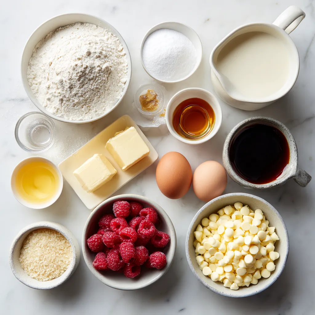 For the flour, you can use whole wheat flour for a nuttier taste. If you want a dairy-free option, try coconut cream instead of heavy cream. You can swap the white chocolate chips for dark chocolate chips if you prefer a richer flavor. Use frozen raspberries if fresh ones are not available; just be careful not to overmix.