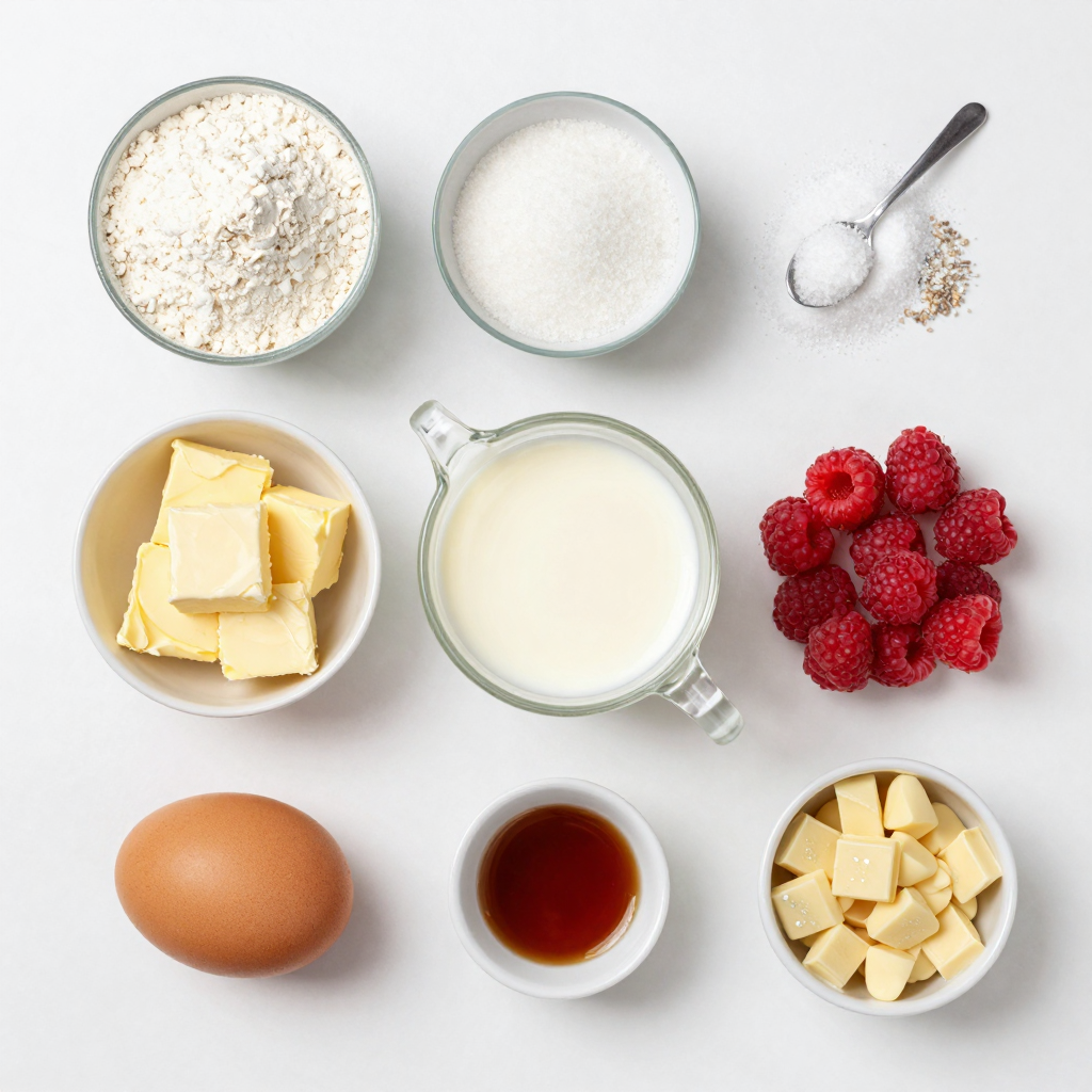 To make delicious Raspberry White Chocolate Scones, you need a few simple ingredients. Here’s what you will need: