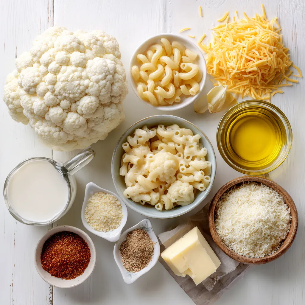 To make your roasted cauliflower mac and cheese, gather these ingredients: