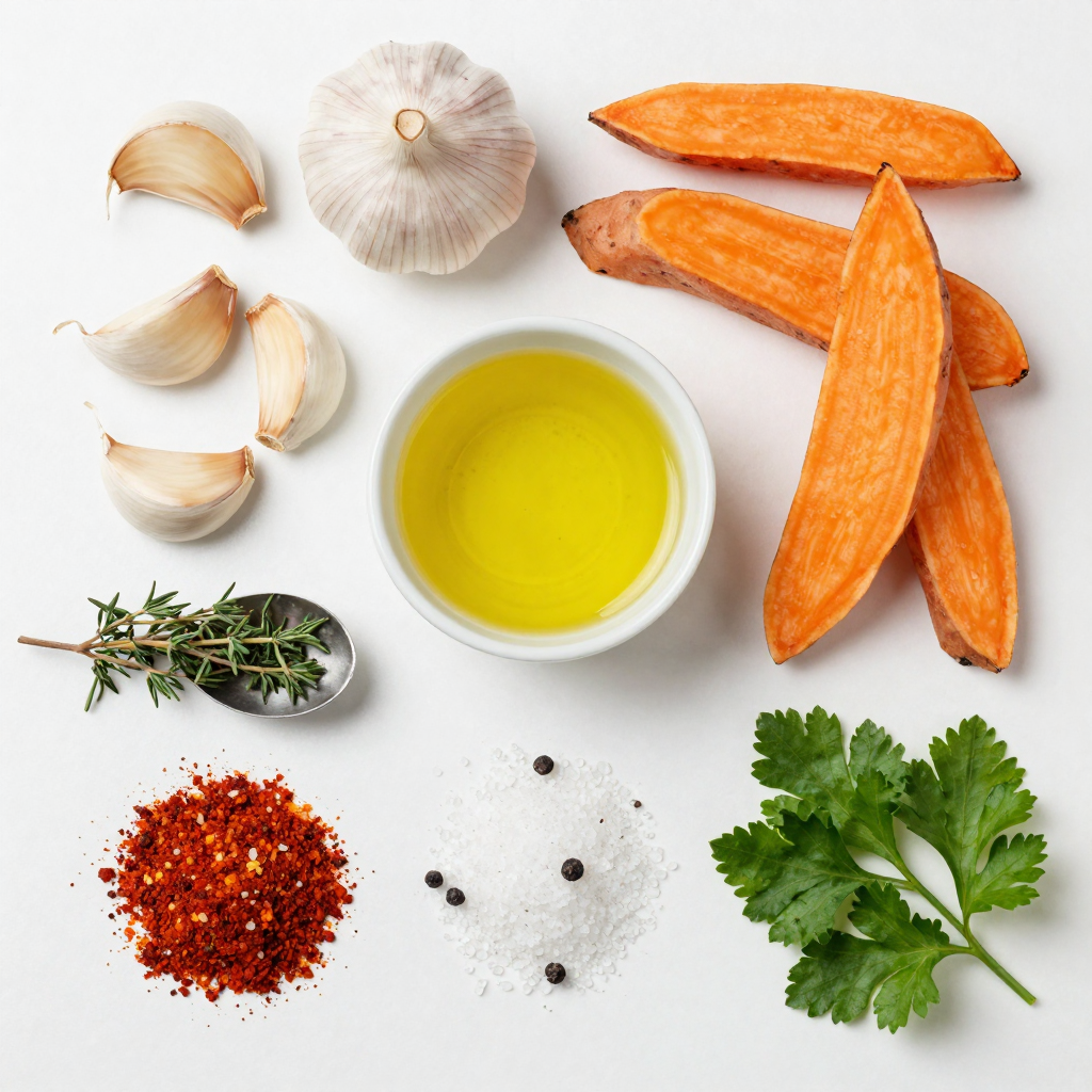 First, preheat your oven to 425°F (220°C). This helps the fries cook well. Next, chop the sweet potatoes into fry shapes. They should be uniform for even cooking. Mince the garlic cloves finely. The more you chop, the stronger the flavor!
