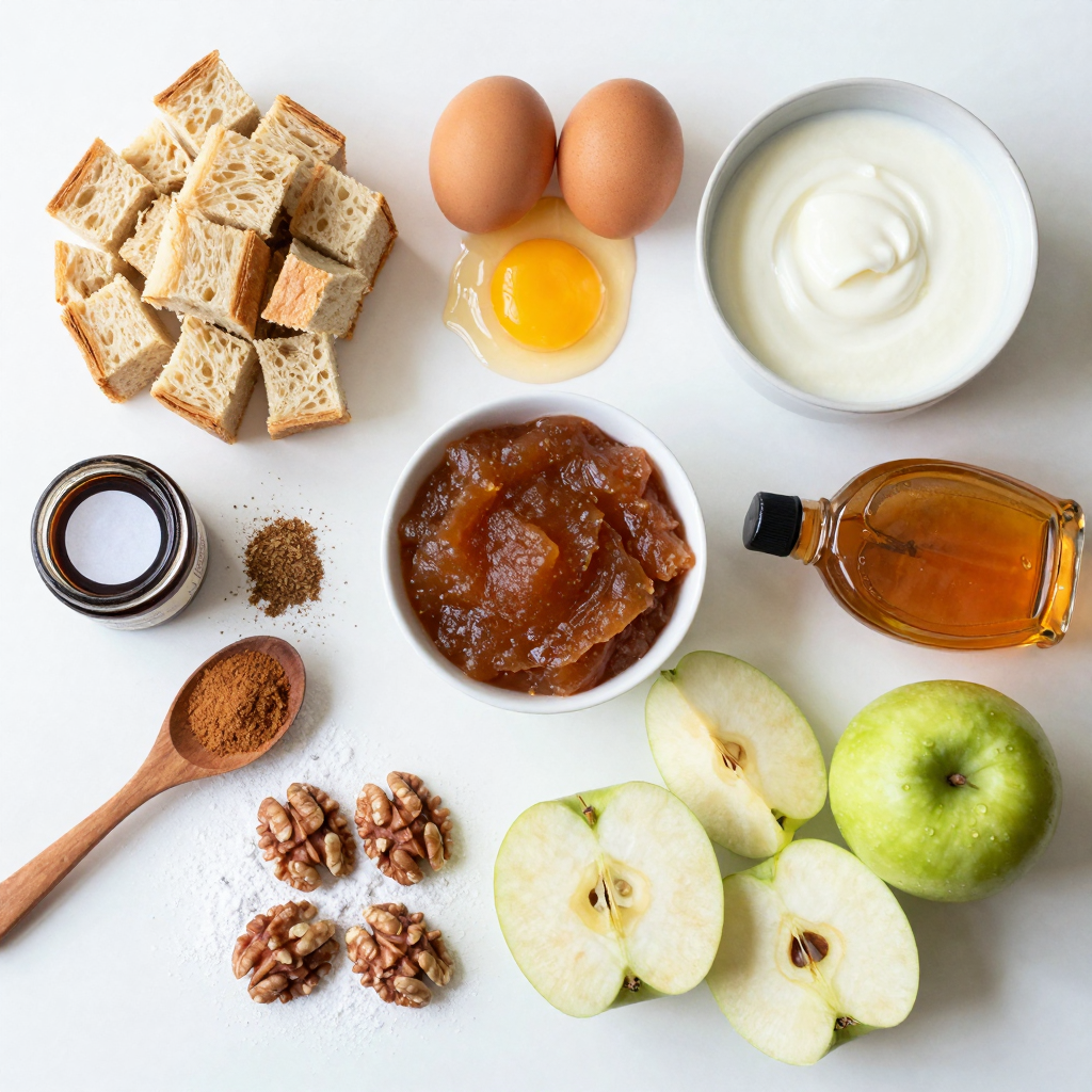 Each ingredient plays a key role. The bread gives a soft base, while the eggs bind everything. The milk adds creaminess, and the applesauce brings moisture. Cinnamon and nutmeg provide warmth and spice. The apples add a fresh crunch, and walnuts add a nice texture.