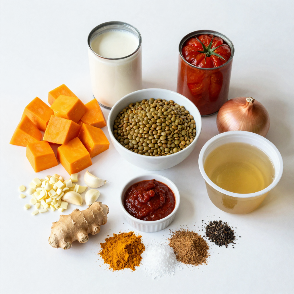 List of Ingredients for Slow Cooker Butternut Squash Lentil Curry