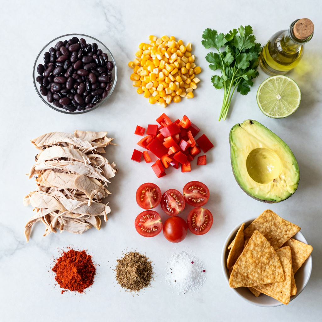 To make a tasty Southwest Chicken Salad, gather these fresh ingredients. The key is using cooked chicken. You can roast or grill it. Shredded chicken adds great texture. Black beans boost protein. They also bring fiber to your dish. Corn adds sweetness. Fresh or frozen works well.