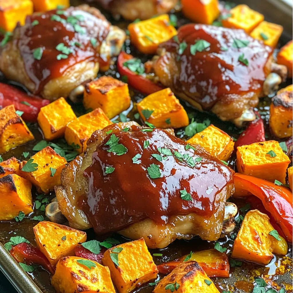 - 4 boneless, skinless chicken thighs - 2 large sweet potatoes, peeled and cubed - 1 red bell pepper, sliced - 1 yellow bell pepper, sliced - 1 cup BBQ sauce (your favorite brand) - 2 tablespoons olive oil - 1 teaspoon smoked paprika - 1 teaspoon garlic powder - Salt and pepper to taste These main ingredients create a tasty, balanced dish. The chicken thighs add protein, while sweet potatoes provide fiber and vitamins. Bell peppers bring color and crunch. The BBQ sauce gives that sweet and smoky flavor that everyone loves. - Fresh parsley, chopped (for garnish) A sprinkle of fresh parsley adds a nice touch. It makes the dish look bright and fresh. Plus, the parsley adds a bit of flavor that enhances the BBQ sauce. - Sheet pan - Parchment paper - Mixing bowls Having the right tools makes cooking easier. A sheet pan helps everything cook evenly. Parchment paper makes cleanup a breeze. Mixing bowls are perfect for tossing your veggies and chicken with spices and sauce. - Preheat oven to 400°F (200°C). - Line a large sheet pan with parchment paper. This step helps with easy cleanup. The parchment paper keeps the chicken and veggies from sticking. - Toss sweet potatoes and bell peppers with olive oil and spices. - Spread vegetables onto one side of the sheet pan. First, peel and cube the sweet potatoes. Then, slice the bell peppers. Combine these in a bowl. Add olive oil, smoked paprika, garlic powder, salt, and pepper. Mix until all pieces are coated. This makes the veggies flavorful and tender. - Coat chicken thighs with BBQ sauce. - Place chicken on the opposite side of the sheet pan. Take the chicken thighs and toss them in half of the BBQ sauce. This adds a nice flavor. Then, place them on the sheet pan away from the veggies. Make sure to keep space between the chicken and vegetables for even cooking. - Bake for 25-30 minutes. - Brush chicken with BBQ sauce in the last 5 minutes. Put the sheet pan in the oven and set a timer. The chicken should reach an internal temperature of 165°F (74°C). In the last 5 minutes, brush on the remaining BBQ sauce. This gives it a sticky, sweet glaze. Enjoy the smell wafting through your kitchen! To make sure the chicken is safe to eat, check the internal temperature. Use a meat thermometer. The chicken should reach 165°F (74°C). This ensures it is cooked properly. Avoid overcooking the chicken for the best taste. Overcooked chicken can become dry. Set a timer for 25 minutes. Check the temperature. If it’s not ready, add a few more minutes. Sweet potatoes can be seasoned in fun ways. Try adding cinnamon or cayenne pepper for a twist. You can also mix in some honey for sweetness. Adjust the cooking time based on how you like your sweet potatoes. If you want them very soft, cook them a bit longer. If you like a firmer bite, check them at 25 minutes. Using parchment paper makes clean-up a breeze. It keeps the sheet pan clean and saves you time. Just lift off the paper after cooking, and you’re done. For quick clean-up, soak the sheet pan in warm soapy water right after use. This helps remove stuck-on food. A little baking soda can also help if needed. {{image_2}} You can switch up the proteins. Instead of chicken thighs, try chicken breasts or even tofu. The texture changes, but the dish stays tasty. You can also use other vegetables. Zucchini and broccoli work great in this recipe. They add different flavors and colors. Mix and match to find your favorite combo. Experiment with different BBQ sauces. Each sauce has a unique taste. Some are sweet, while others are tangy or spicy. This can change the whole meal. You can also add spices for more heat or sweetness. A pinch of cayenne can kick it up. A touch of brown sugar can make it sweeter. Need a gluten-free option? Most BBQ sauces are gluten-free, but always check the label. If you want a vegetarian version, swap the chicken for chickpeas or lentils. They provide protein and pair well with sweet potatoes. When you have leftovers, cool them down first. Place the chicken and sweet potatoes in shallow containers. This helps them cool faster. Cover them tightly with lids or plastic wrap. Store the leftovers in the fridge. They last about 3 to 4 days. To reheat, the oven is best. Preheat your oven to 350°F (175°C). Place the chicken and sweet potatoes on a baking sheet. Heat for about 15-20 minutes. This keeps the chicken juicy and sweet potatoes soft. You can also use a microwave. Heat in short bursts of 1-2 minutes. This works but might make the chicken a bit dry. You can freeze leftovers too. Let the food cool completely. Pack it in airtight containers or freezer bags. Label them with the date. Food can last for up to 3 months in the freezer. When ready to eat, thaw in the fridge overnight. You can also use the microwave for a quicker thaw. Just remember to heat it thoroughly before serving. Cook BBQ chicken for 25-30 minutes at 400°F (200°C). The chicken needs to reach an internal temperature of 165°F (74°C) to be safe and juicy. Use a meat thermometer to check this. When it’s done, the chicken will be tender and full of flavor. Yes, you can use frozen sweet potatoes. You should adjust the cooking time, adding an extra 5-10 minutes. Make sure to spread the sweet potatoes evenly on the sheet pan. This helps them cook through. If they are still a bit frozen, they may need more time to get soft. I love serving this dish with a fresh green salad or coleslaw. You can also pair it with rice or quinoa. These sides balance the meal well. For a fun twist, serve it with cornbread for a comforting touch. You can prepare the sweet potatoes and chicken thighs ahead of time. Just coat them in BBQ sauce and store them in the fridge. This makes cooking easy later. When you’re ready, bake them as directed. Leftovers also store well in the fridge for up to three days. This blog post covered everything you need to make sheet pan BBQ chicken with sweet potatoes and bell peppers. You learned about the main ingr