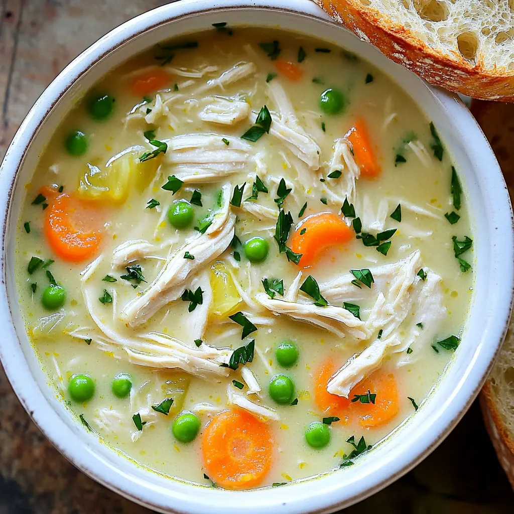 Each ingredient plays a key role in making this soup rich and tasty. The chicken gives the soup its base. The broth adds depth and flavor. Onions and garlic bring sweetness and aroma. Carrots and celery add crunch and color. Peas make it bright and fresh. Cream makes the soup smooth and rich. Lemon zest and juice provide a tangy kick. Finally, seasoning brings everything together.