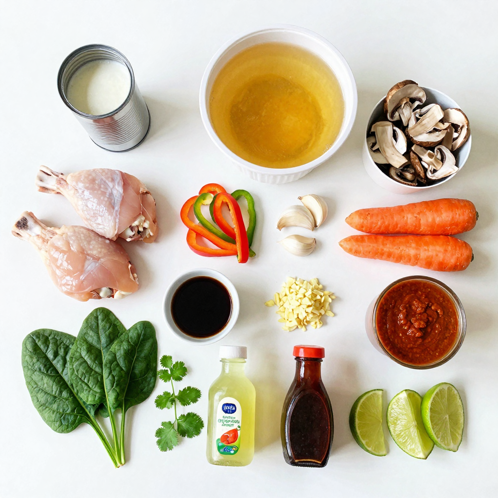 When you gather these ingredients and tools, you set yourself up for success. Each item adds a layer of flavor and texture to your soup. The chicken thighs give heartiness, while the coconut milk adds creaminess. The red curry paste brings all the flavors together. Use the optional items to make the soup your own. You can adjust it to fit your taste.
