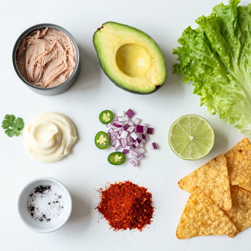 To make Spicy Avocado Tuna Salad, gather these main ingredients first. The tuna gives protein, while the avocado adds creaminess. The red onion and jalapeño bring a nice crunch and heat. You can adjust the spice level by adding more or less jalapeño. The mayonnaise and lime juice create a smooth base, while chili powder adds a kick.