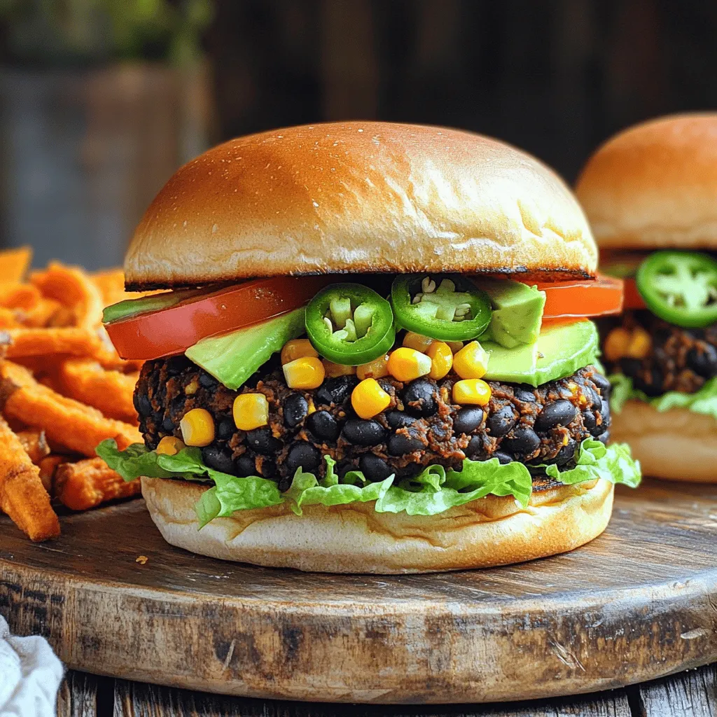 To make your spicy black bean burgers, gather the following ingredients: - 1 can (15 oz) black beans, drained and rinsed - 1/2 cup cooked quinoa - 1/2 cup breadcrumbs (or gluten-free breadcrumbs) - 1/4 cup red onion, finely chopped - 1/4 cup corn kernels (fresh or frozen) - 2 cloves garlic, minced - 1 jalapeño, deseeded and minced - 1 teaspoon cumin - 1 teaspoon smoked paprika - 1/2 teaspoon chili powder - Salt and pepper to taste - 1 tablespoon olive oil (for cooking) - Burger buns - Toppings: avocado slices, lettuce, tomato, spicy mayo (optional) For black beans, I recommend brands like Goya or Bush's. They offer great taste. If you need gluten-free breadcrumbs, try Ian's or Schar. For quinoa, choose brands like Ancient Harvest for consistent quality. You can swap the jalapeño for a milder pepper if you want less heat. For toppings, fresh avocado and spicy mayo elevate the flavor nicely. Black beans are rich in protein and fiber, making them filling. Quinoa adds extra protein and is gluten-free. Red onion gives a sharp taste and is good for your heart. Corn adds sweetness and crunch. Garlic has health benefits, helping to boost your immune system. Olive oil provides healthy fats, which can support heart health. Start by mashing the black beans in a bowl. Use a fork or a potato masher. Leave some chunks for texture. Next, mix in cooked quinoa, breadcrumbs, and chopped red onion. Add corn, minced garlic, and jalapeño for heat. Don't forget the spices! Stir in cumin, smoked paprika, and chili powder. Season with salt and pepper. Keep mixing until everything is well combined. Now it’s time to shape the mixture into patties. You can make 4-6 patties, depending on the size you want. If the mix is too wet, add more breadcrumbs. This helps them hold together. Heat olive oil in a skillet over medium heat. Place the patties in the skillet. Cook each side for 5-6 minutes. Look for a crispy and golden brown color. While the patties cook, toast the burger buns. You can do this in a separate pan or on a grill. Once the patties are ready, it’s time to build your burger. Start with the bottom half of the bun. Place a patty on top. Add your favorite toppings. I love avocado slices, lettuce, tomato, and spicy mayo. This recipe makes a tasty, filling meal that everyone will enjoy. For the full recipe, check the details above. To make the best spicy black bean burgers, use fresh ingredients. Fresh garlic and onion bring out great tastes. Add enough spices to give your burger a kick. Cumin and smoked paprika add depth. If you like heat, use a ripe jalapeño. Remember, you can adjust spices to your taste. You can cook these burgers in two main ways: grilling or pan-frying. Grilling gives a smoky flavor and nice grill marks. To grill, preheat your grill and oil the grates. Cook each patty for about 5-6 minutes. Flip them gently to avoid breaking. Pan-frying also works well. Heat olive oil in a skillet over medium heat. Cook the patties for 5-6 minutes on each side until they are crispy. Avoid over-mashing the black beans. You want some texture in your burger. If the mixture feels too wet, add more breadcrumbs. This helps the patties hold together. Don’t skip letting the burgers cook enough on each side. This ensures a nice golden brown color. Lastly, choose burger buns that can support the toppings without falling apart. Check out the Full Recipe for more tips and details. {{image_2}} You can easily make these black bean burgers vegan. Use flaxseed meal instead of eggs as a binder. Mix 1 tablespoon of flaxseed meal with 2.5 tablespoons of water. Let it sit for a few minutes until it thickens. This will help hold your burgers together nicely. To keep your burgers gluten-free, choose gluten-free breadcrumbs. You can also use crushed gluten-free crackers or oats. Both options work well to bind the ingredients. Always check labels to ensure all ingredients are gluten-free. Toppings can take your burger to the next level. Avocado adds creaminess and healthy fats. Fresh tomatoes bring a juicy bite. Lettuce adds crunch, while spicy mayo gives heat. You can also add pickled jalapeños for extra spice. Try different cheeses or salsas to find your favorite combo. Check out the Full Recipe for more ideas! After making spicy black bean burgers, you may have extras. Store leftover patties in an airtight container. Place parchment paper between layers to prevent sticking. Keep them in the fridge for up to four days. This way, they stay fresh and tasty. To freeze the patties, let them cool completely. Then, place them in a single layer on a baking sheet. Freeze until firm, about one to two hours. Once frozen, transfer them to a freezer-safe bag. They can last up to three months in the freezer. This makes meal prep easy and fun. When you're ready to enjoy your burgers again, reheating is simple. For the best taste, use a skillet over medium heat. Cook each patty for about five minutes on each side. If you prefer, you can also reheat them in the oven at 375°F for about 10-15 minutes. This gives them a nice crisp. Enjoy your meal with fresh toppings from the Full Recipe! Yes, you can use canned black beans. They save time and are easy to find. Just drain and rinse them well. This helps remove extra salt and keeps your burgers fresh. Canned beans work great in the spicy black bean burger recipe. You can tell the burgers are done when they are golden brown on both sides. Cook them for about 5-6 minutes per side. The outside should feel crispy, and the inside should be warm. You can also check the temperature with a food thermometer. Aim for 165°F for a safe bite. If you need a substitute, try using crushed cornflakes or oats. You can also use ground nuts or seeds for a gluten-free option. Just make sure the texture is similar to breadcrumbs. This will help the burgers hold together well. Yes, baking is a great option! Preheat your oven to 375°F. Place the patties on a baking sheet lined with parchment paper. Bake fo