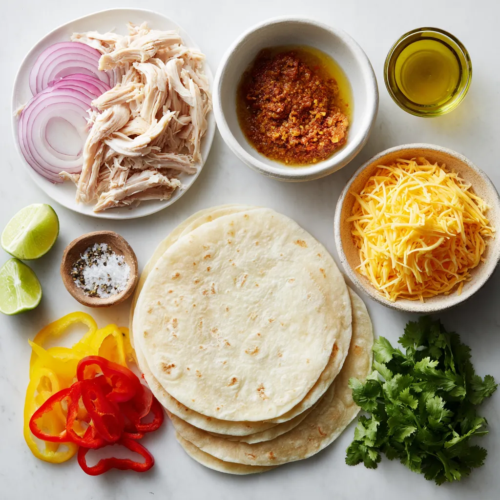 These ingredients create a tasty base for spicy chipotle chicken quesadillas. You get a mix of flavors and textures that work well together. The chicken gives you protein, while the cheese adds creaminess.