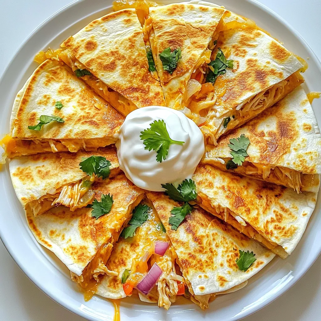 Presentation is key for a beautiful meal. Cut the quesadillas into wedges for easy serving. Arrange them in a circle on a large platter. Drizzle sour cream in the center for dipping. Add fresh cilantro sprigs for color. This makes your dish look as good as it tastes!