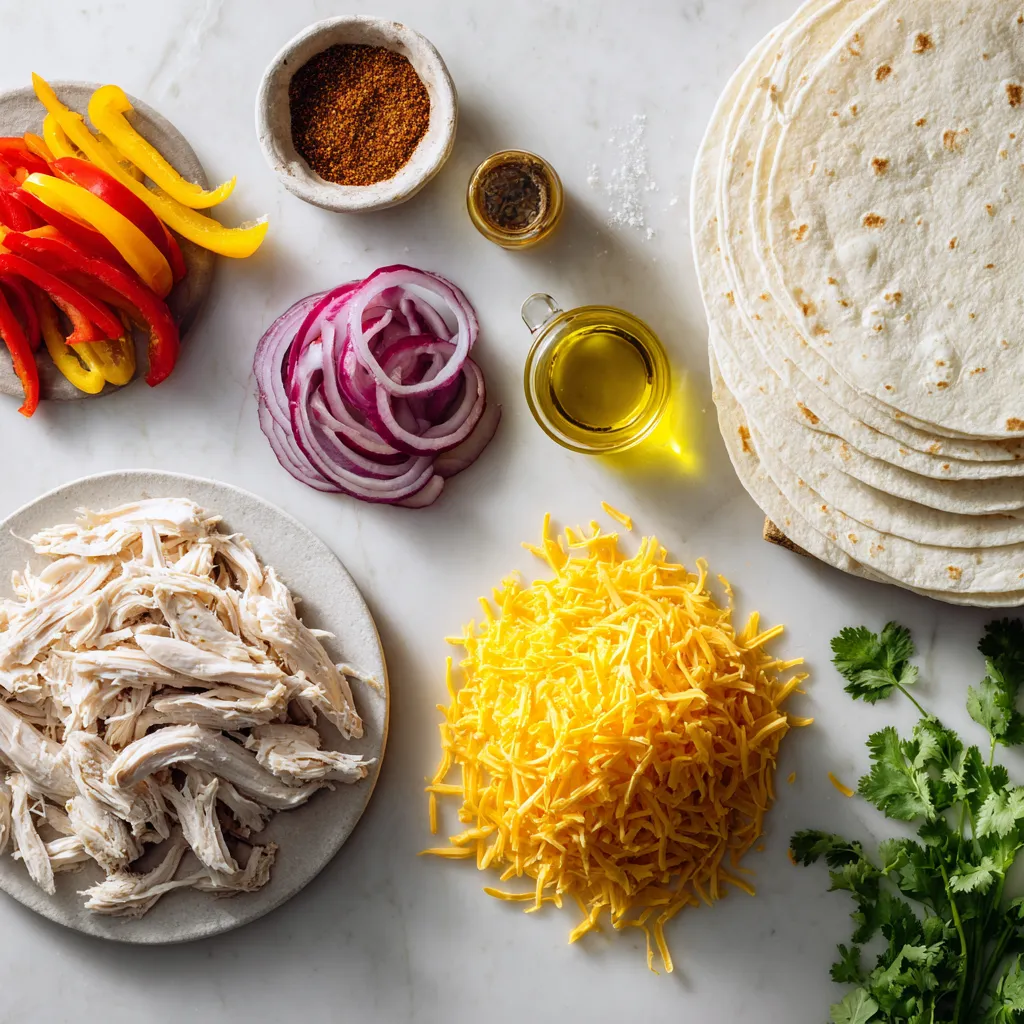 Start by cooking your chicken breasts. Shred them into small pieces. Slice one medium red onion and two bell peppers. Use any color of bell pepper you like. In a bowl, mix the shredded chicken with one tablespoon of chipotle chili powder, one teaspoon of cumin, and salt and pepper to taste. This mix will give your quesadillas that spicy kick.