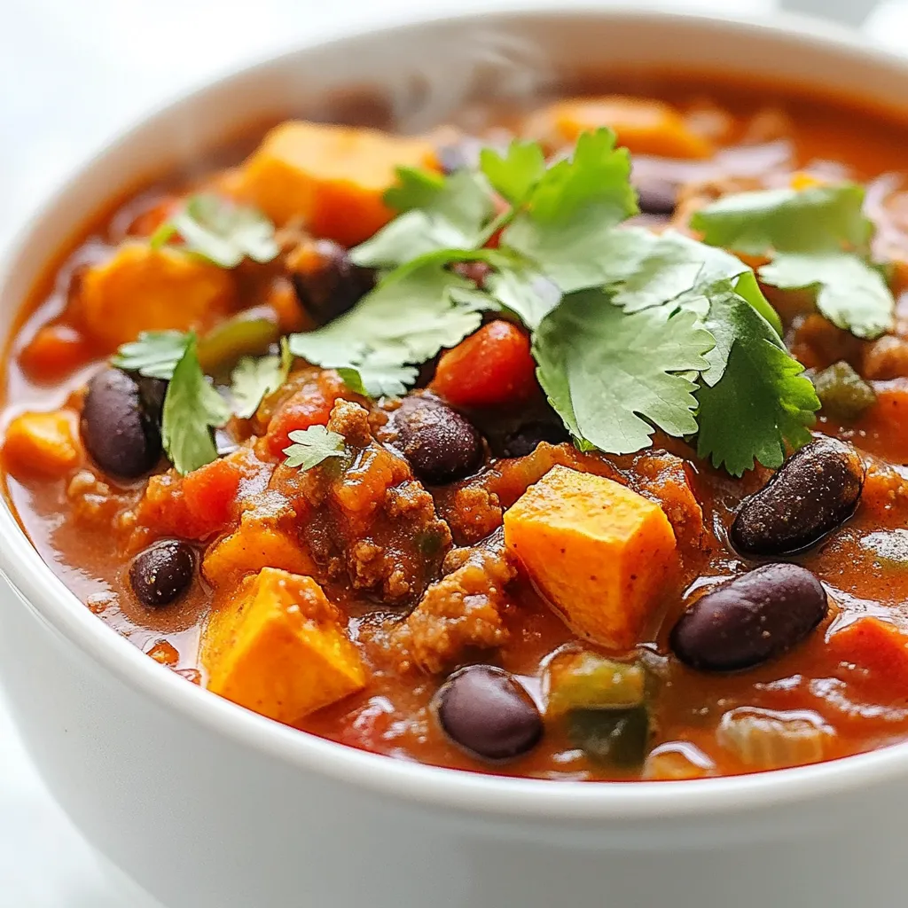 To make this chili stand out, use fresh ingredients. Fresh sweet potatoes and herbs enhance the taste.