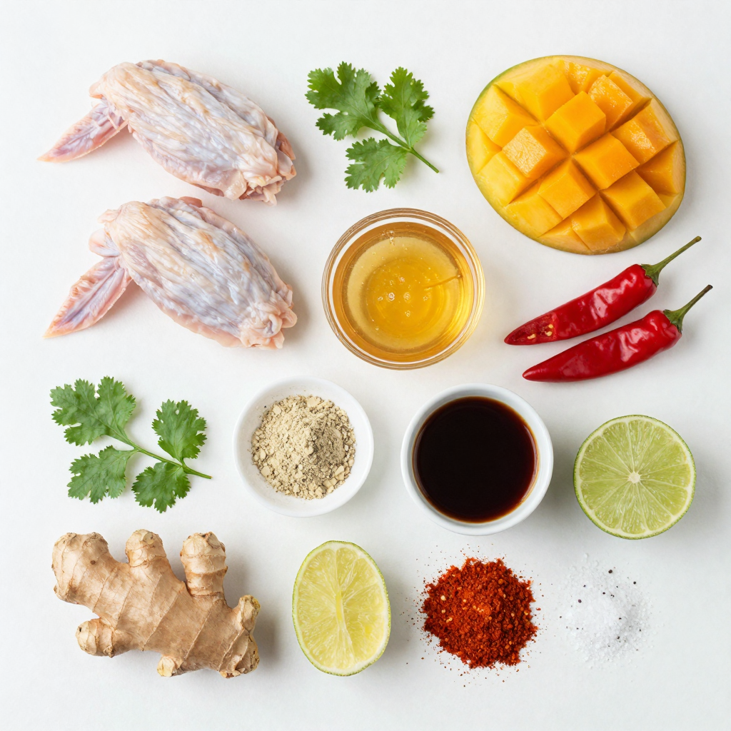 For these spicy mango habanero wings, the main ingredients are simple yet bold. The chicken wings provide the perfect canvas. They soak up all the delicious flavors. A ripe mango adds a sweet touch, balancing the heat. Habanero peppers give these wings their signature kick. You can adjust the amount to fit your spice level.