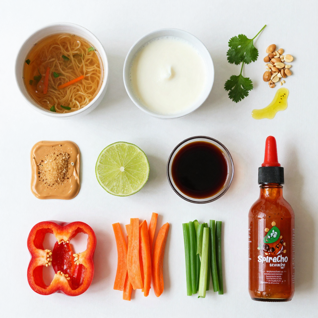 To make Spicy Thai Peanut Ramen, you will need some simple ingredients. Each one plays a key role in creating the rich, bold flavors of this dish. Here’s the full list: