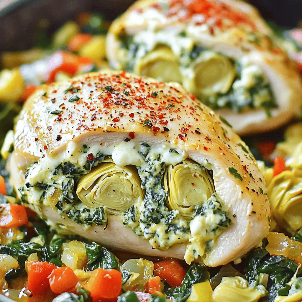 If you want a vegetarian version, you can replace the chicken with large portobello mushrooms. These mushrooms can hold the stuffing well. Just prepare the spinach and artichoke mix as usual. You can also use tofu or tempeh for a protein-rich option. These changes keep the flavors you love while making it plant-based!