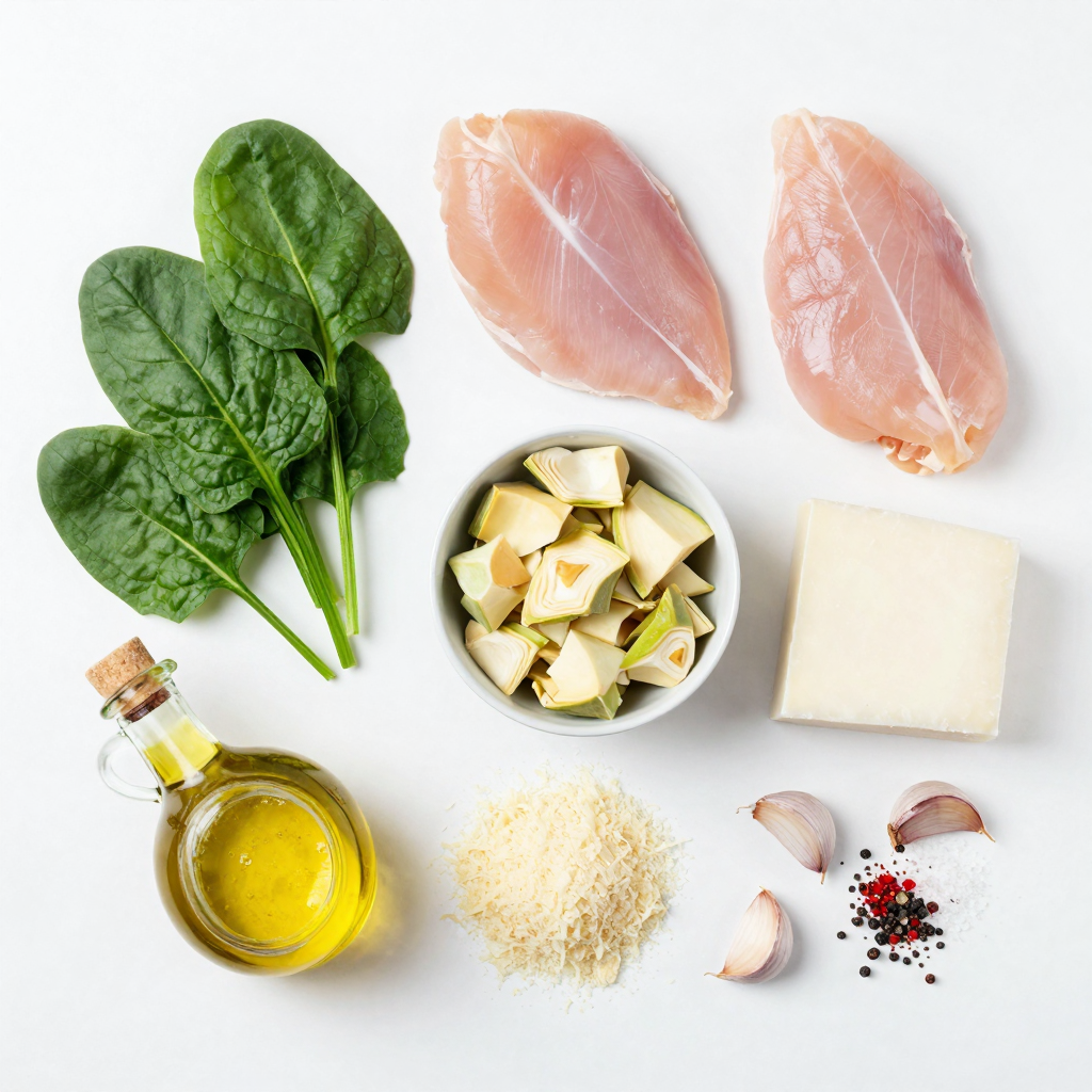 To make Spinach Artichoke Stuffed Chicken, gather these items: