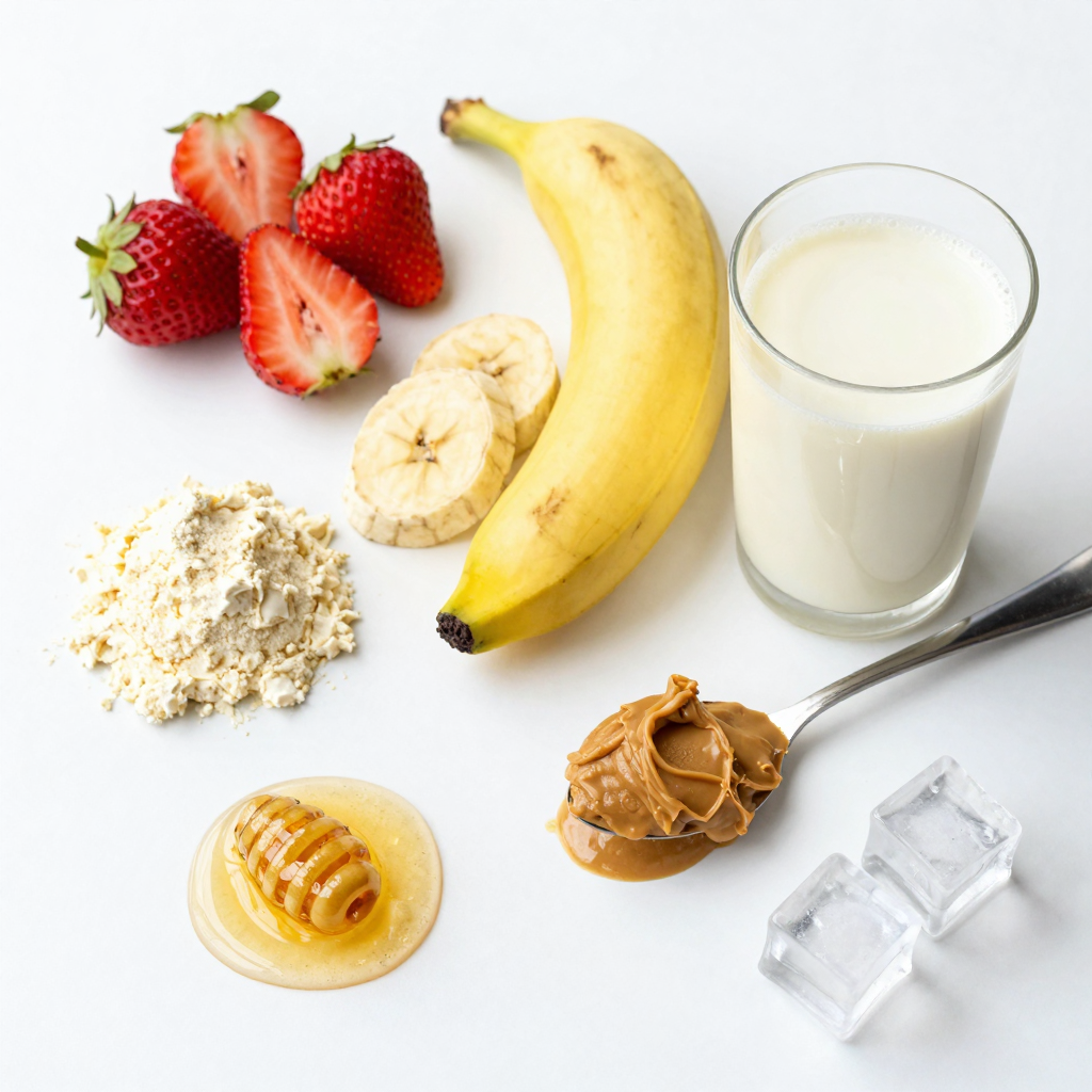 - Step 1: Combine strawberries, banana, and protein powder in a blender.