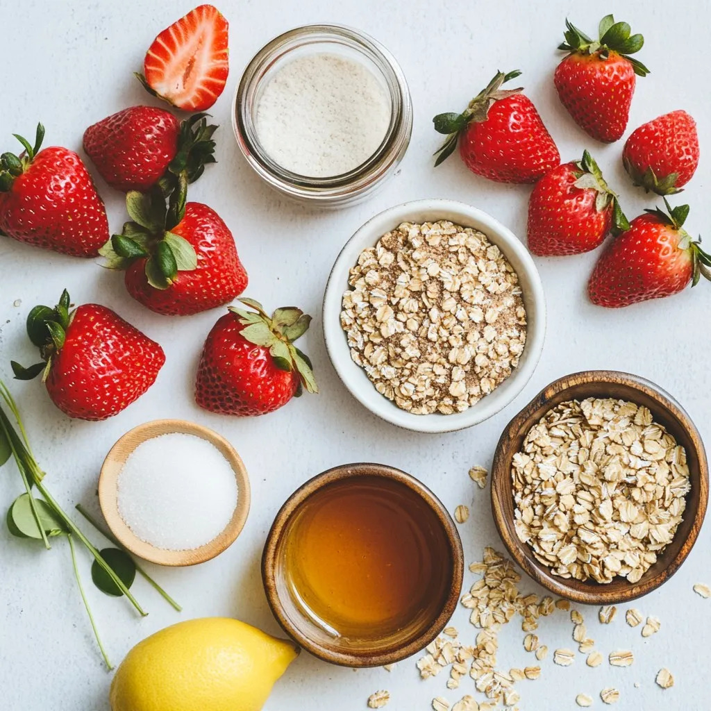 Coconut oil or unsalted butter keeps the bars moist. Honey or maple syrup adds natural sweetness. Don’t forget the vanilla extract for extra flavor. Fresh strawberries give a burst of color and taste. Cornstarch thickens the fruit filling. Lemon juice balances the sweetness and brightens the flavors.